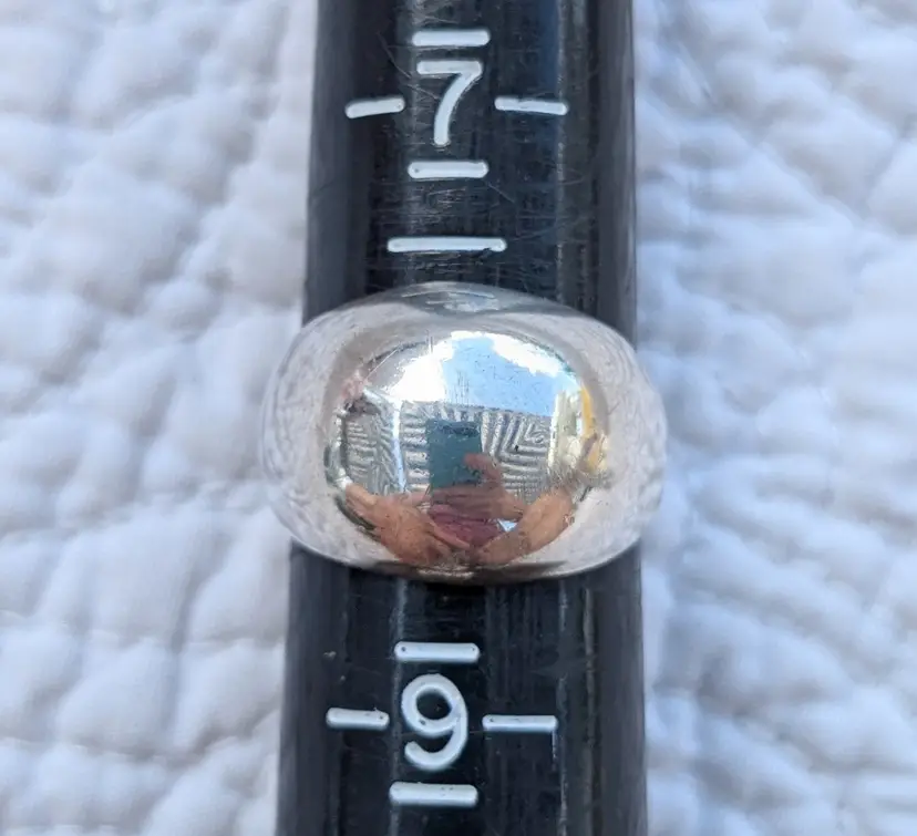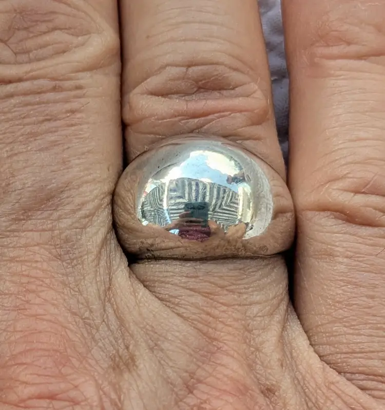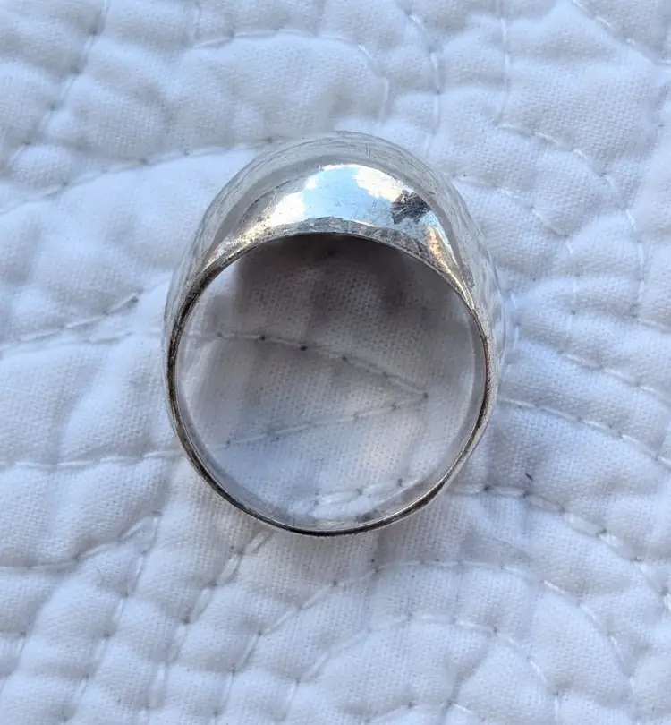 This ring is unmarked but acid tests as positive for sterling silver.