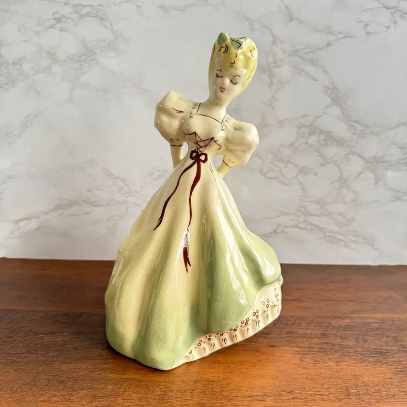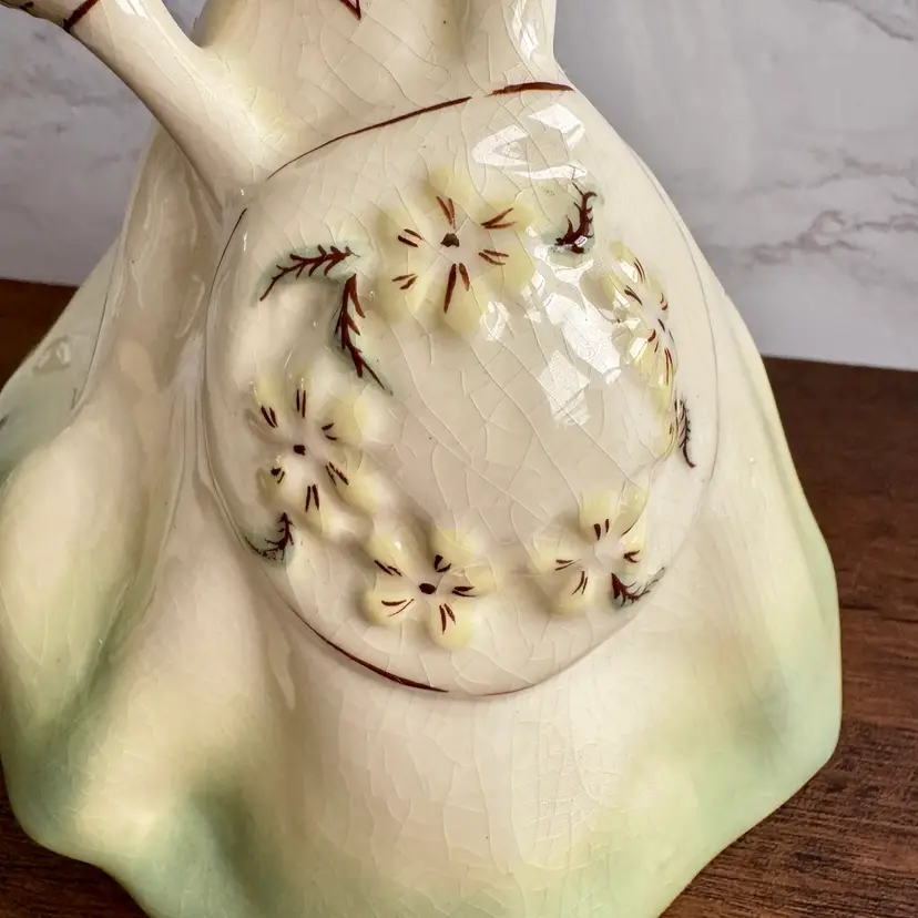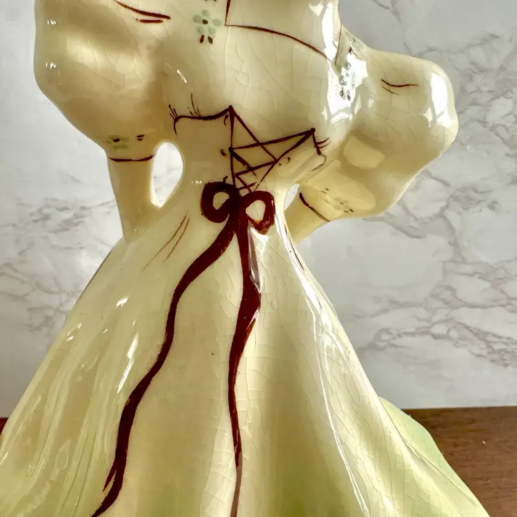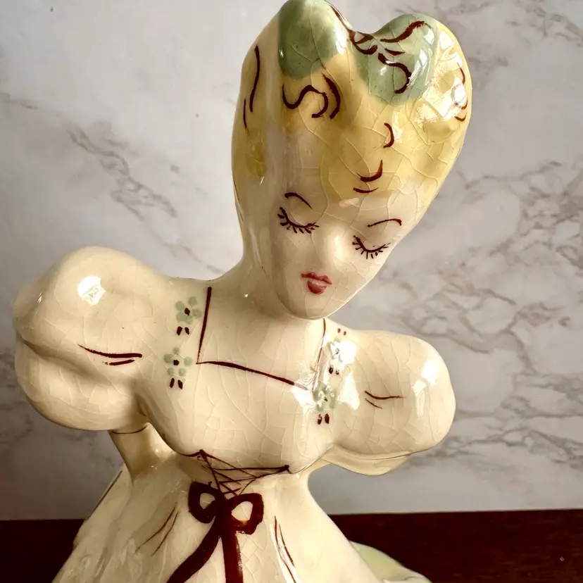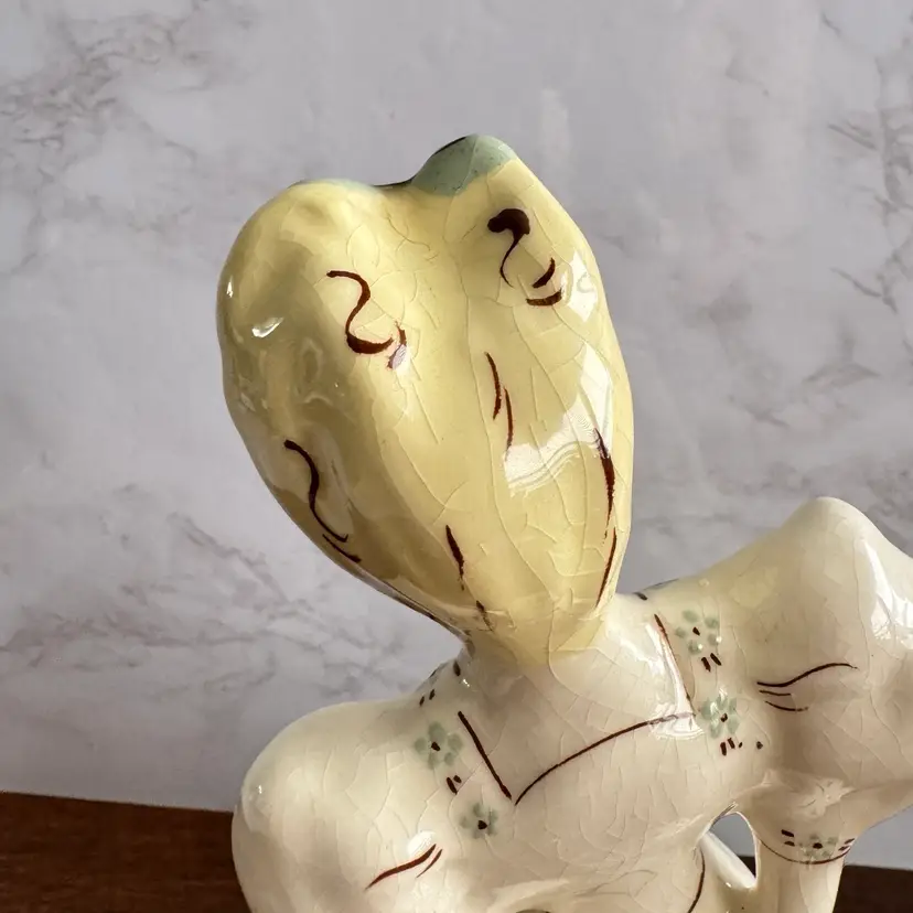 No makers mark but identified with online research. Good vintage condition with no chips or cracks but considerable crazing. Very large and heavy for a figurine. Measures about 6-1/4” x 5-1/2” x 9-3/4”h
