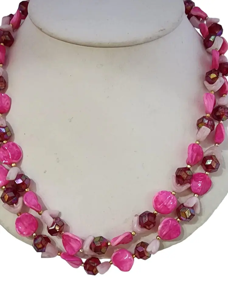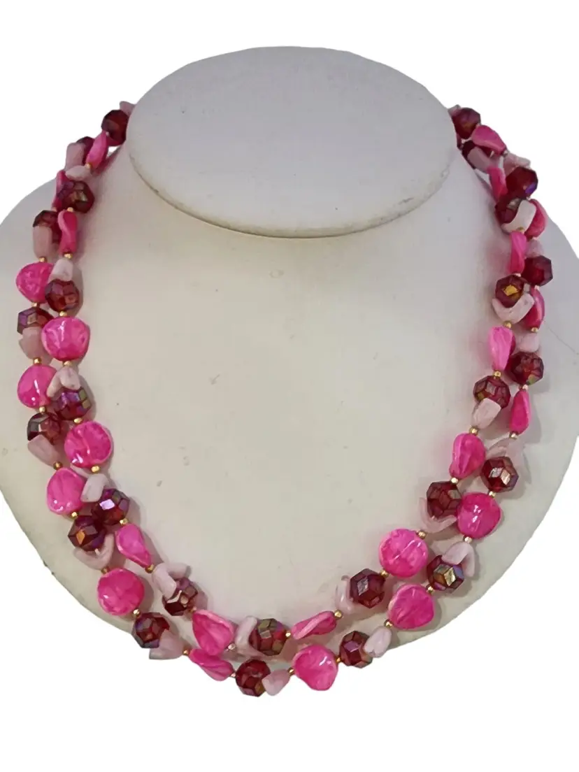 Vintage Molded Acrylic Double Strand Necklace (A4864)