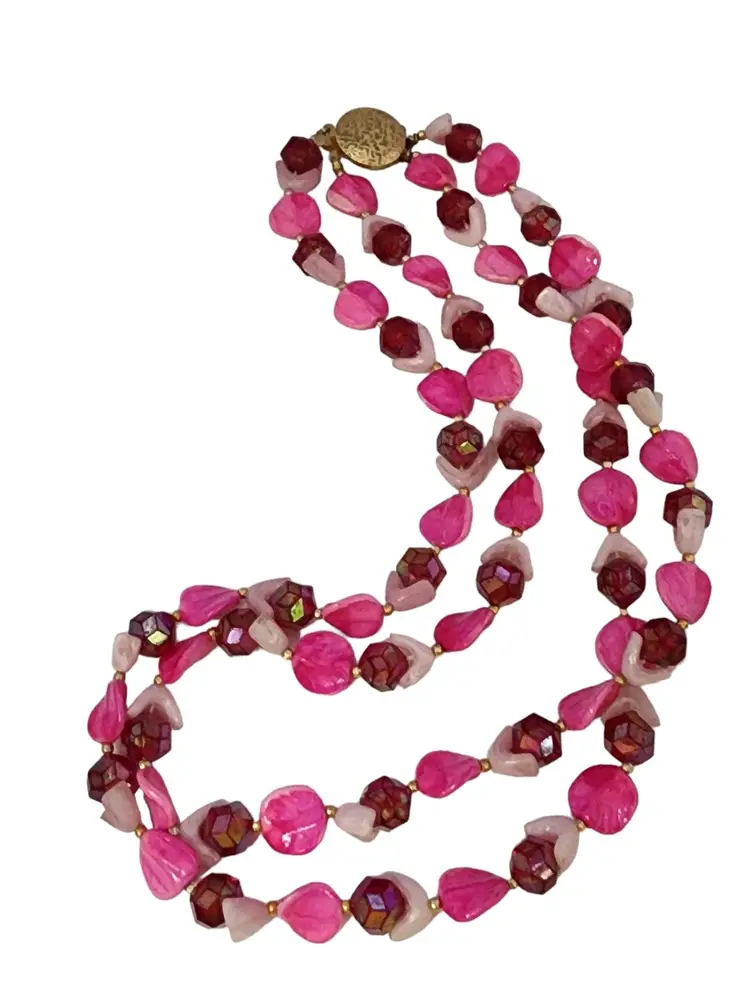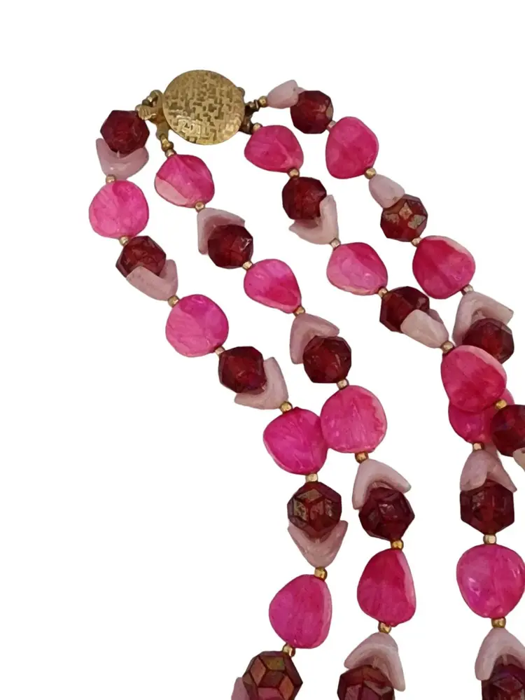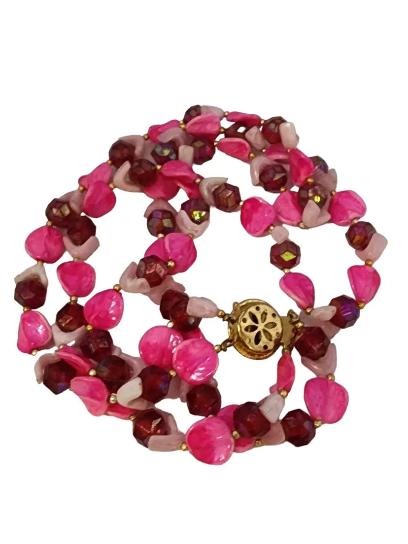 Size: 18"/20" Color: Pink Condition: Very good vintage Signed: None Details: Well made, nice fancy push in clasp.