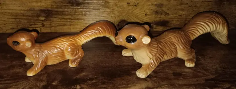 Vintage mom and baby squirrels. Made in Japan. In good condition with no damages. The mom measures 9.5 inches long. The baby measures approx. 7 inches long.