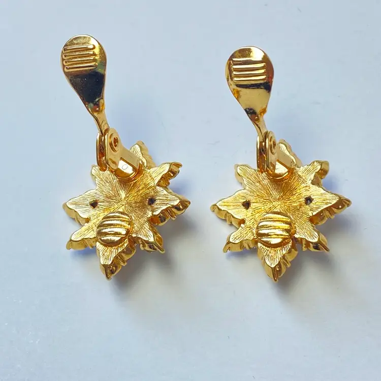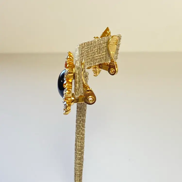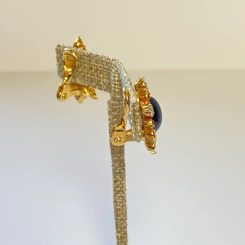 Add some vintage glam to your look with these stunning black cabochon clip-on earrings from Monet. These retro huggies feature 20 sparkling rhinestones that will catch the light in any room. The round shape and clip-on closure make them comfortable to wear all day or night. These statement earrings are perfect for any occasion and add a touch of beauty, art, and retro style to your wardrobe. Whether you're dressing up for a special event or adding a touch of glam to your everyday look, these earrings are sure to make a statement.