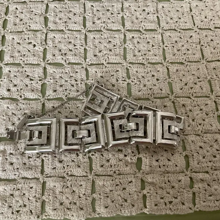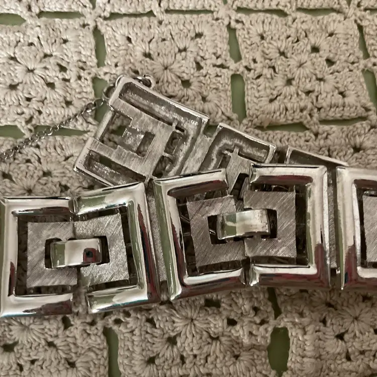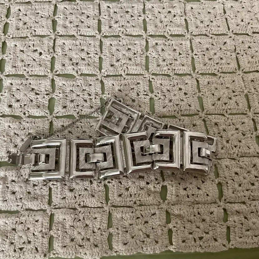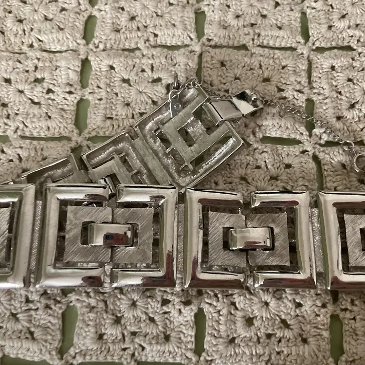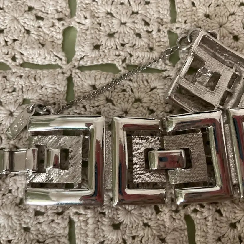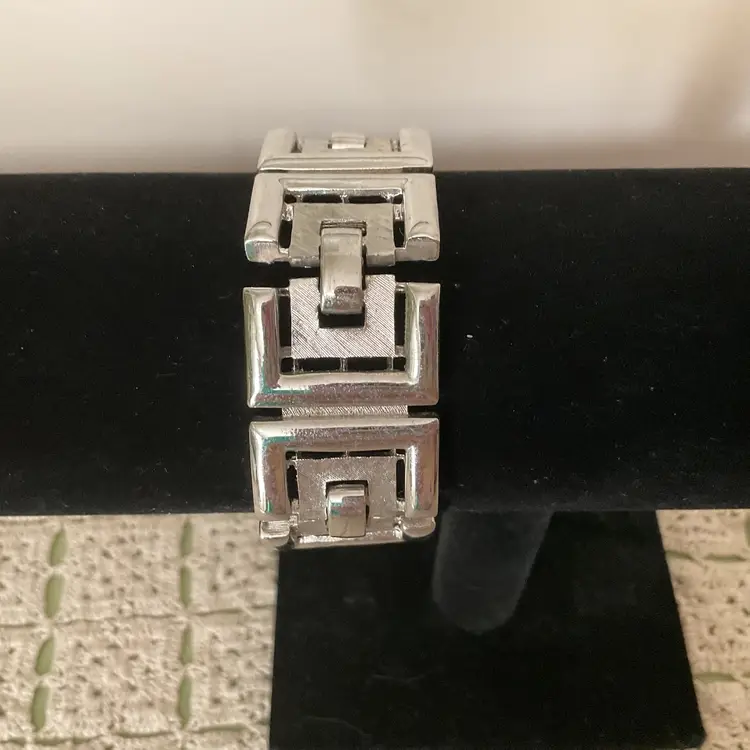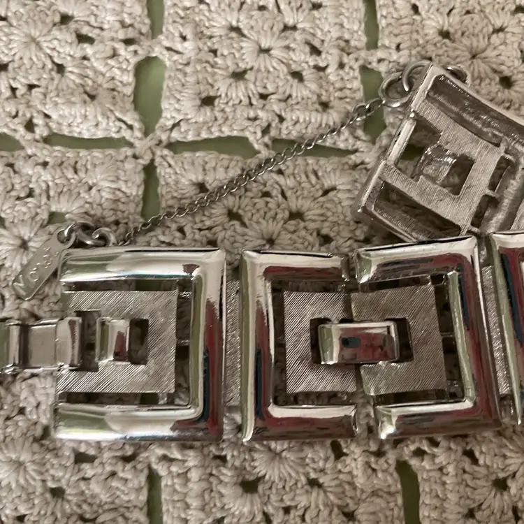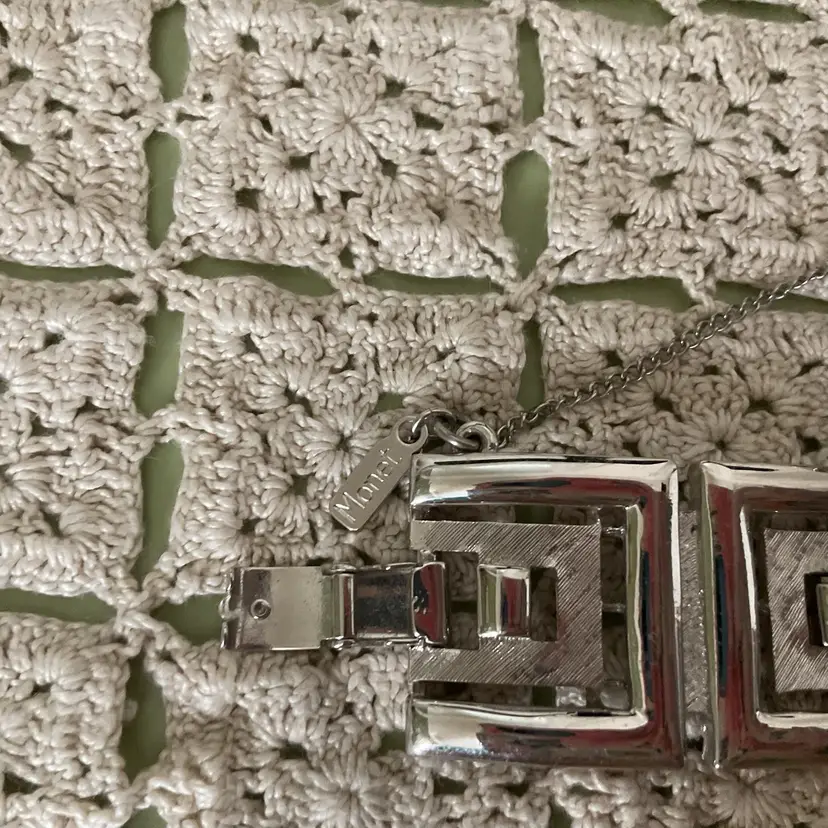 BEAUTIFUL Monet silvertone bracelet. 8” x 1”. Safety chain. Wonderful vintage condition.