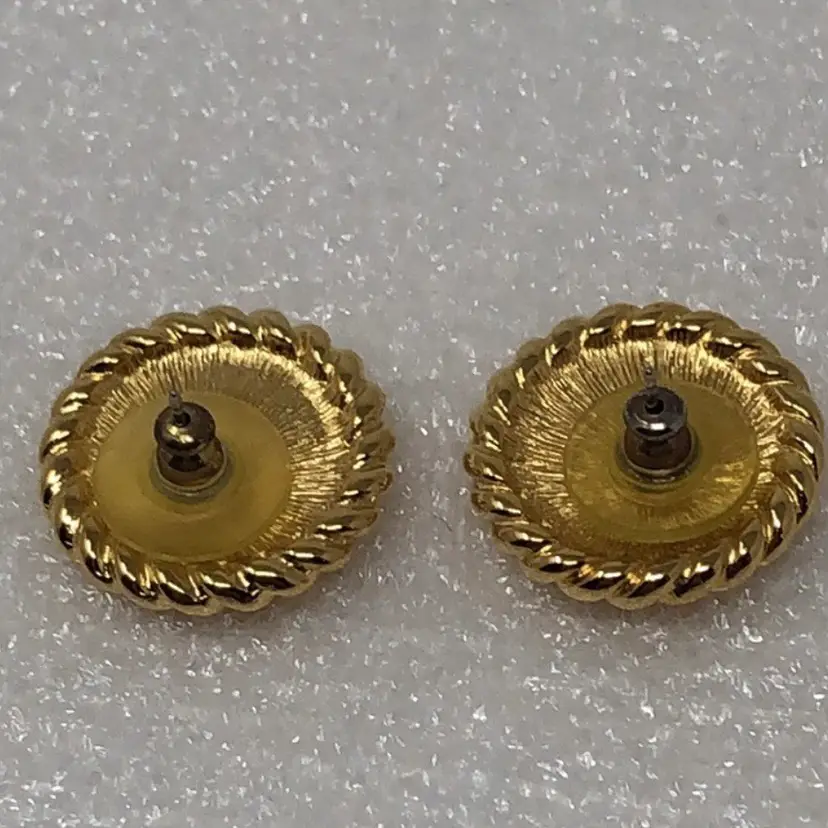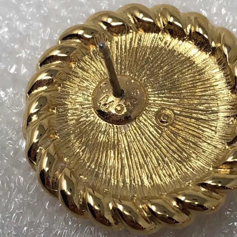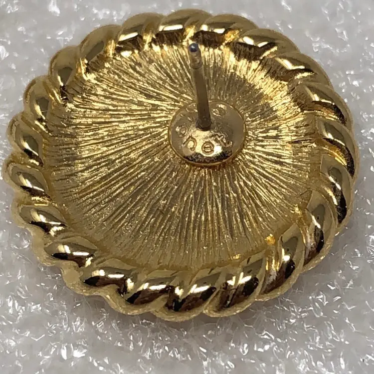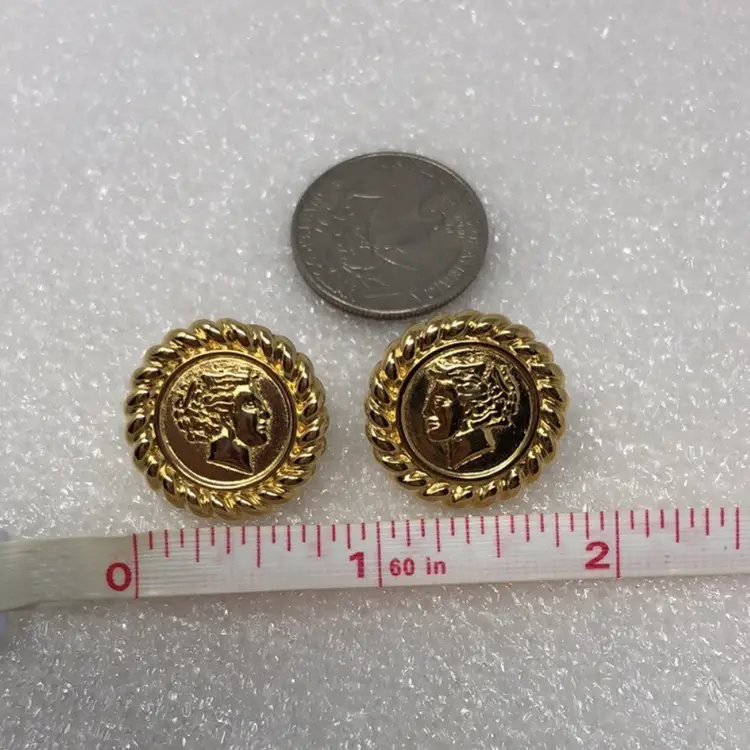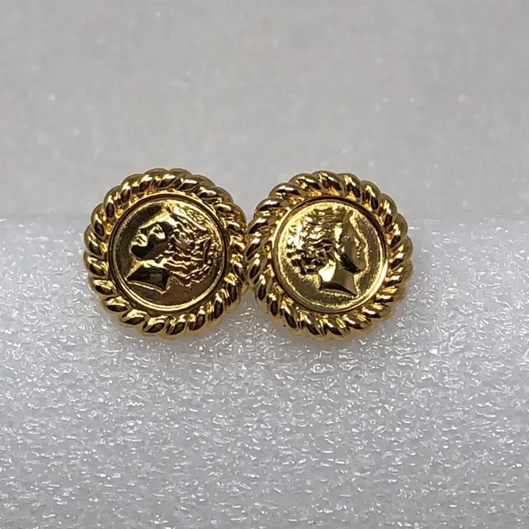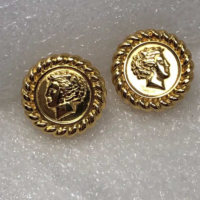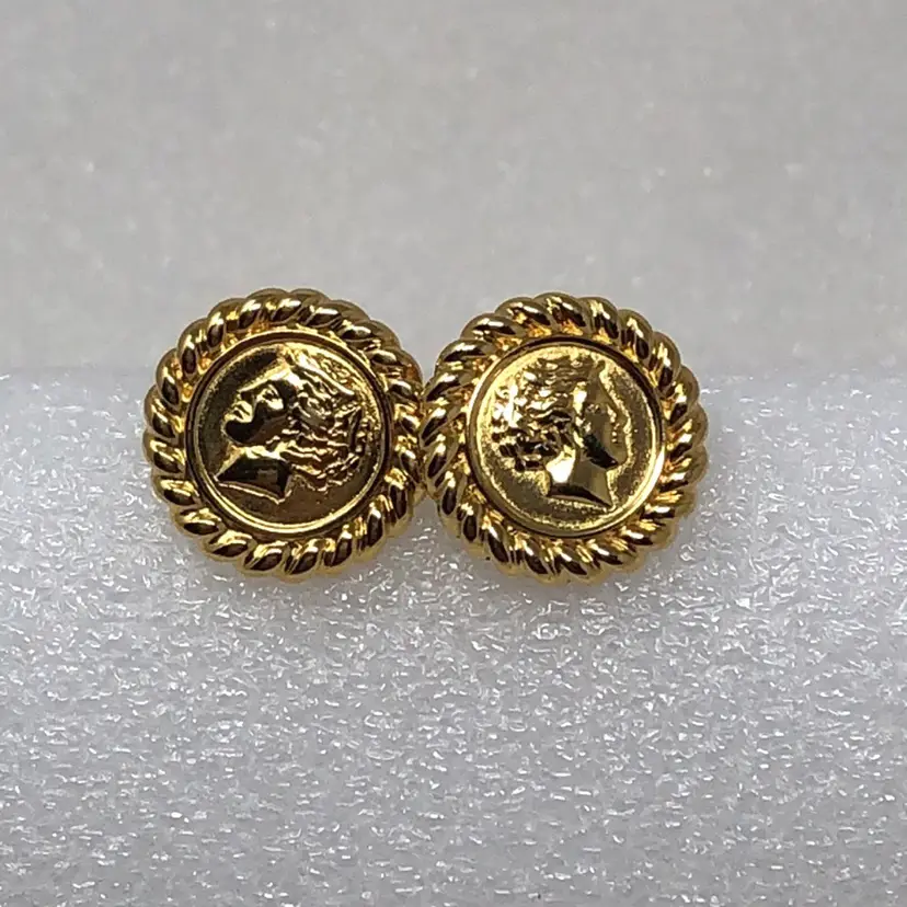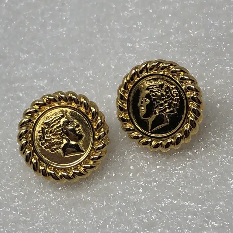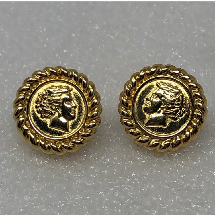 Gold tone Roman or Greek cameo For pierced ears Signed Monet on back Vintage coin style Mid century modern Statement Estate