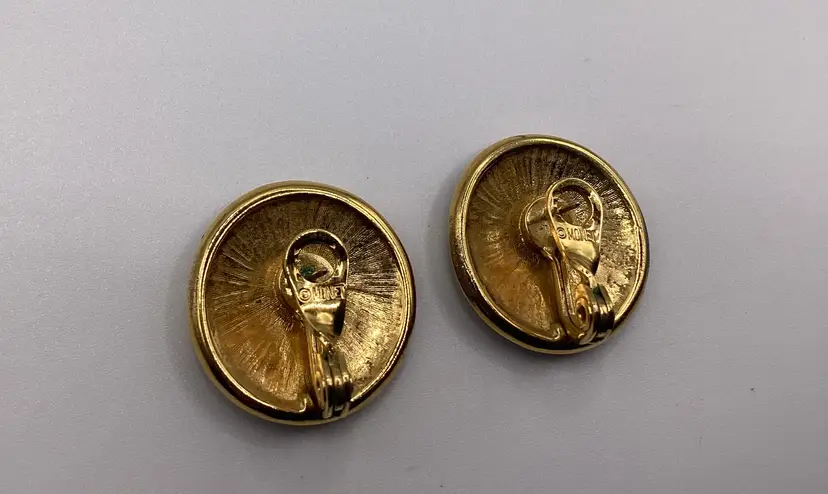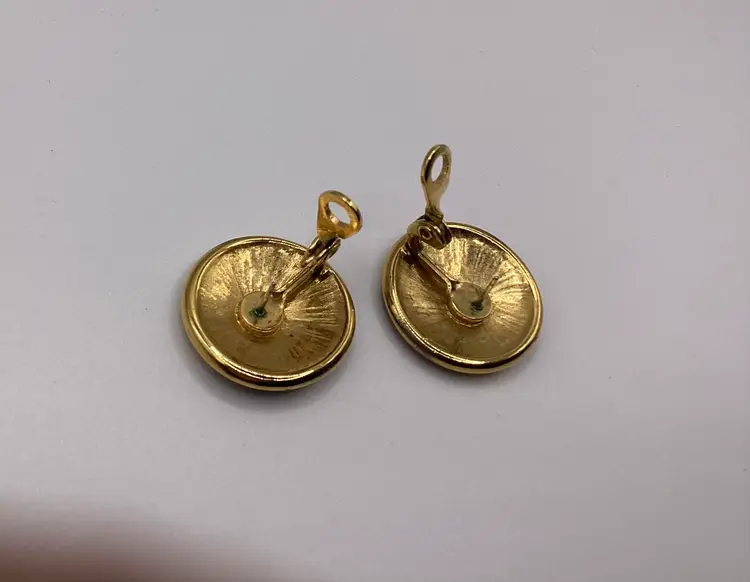 Brand: Monet Identifier: Marked Monet Features: Round / Post with attached back Material: Metal and Enamel Pattern/Design: Geometric Color: Black Enamel and Goldtone Measurements: 1” diameter Condition: Used / Excellent Condition / Like new / No issues As is and explained to the best of my knowledge. Please reach out if you have questions!
