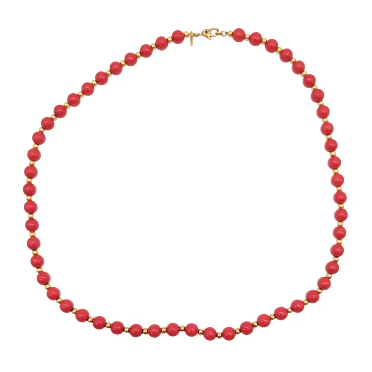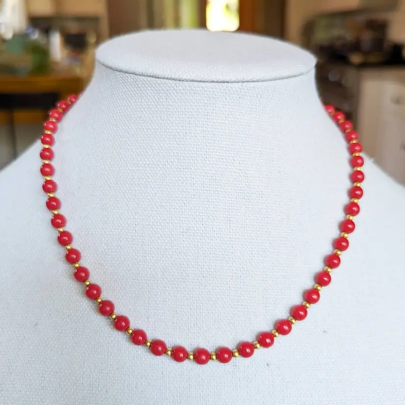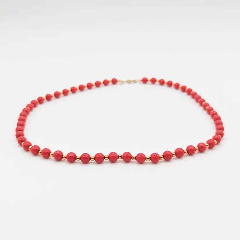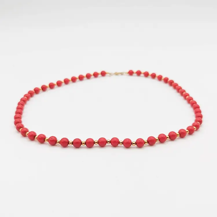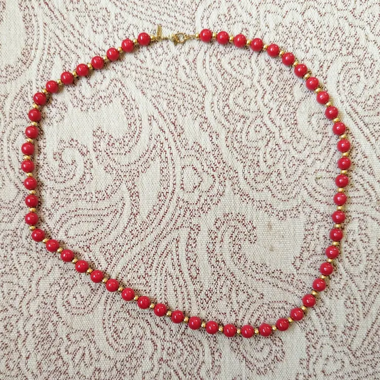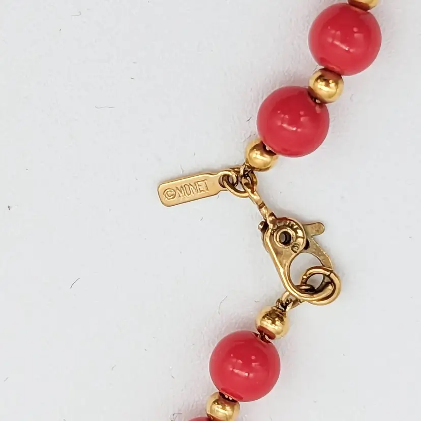 Vintage Monet Red and Gold Acrylic Beaded Necklace Signed