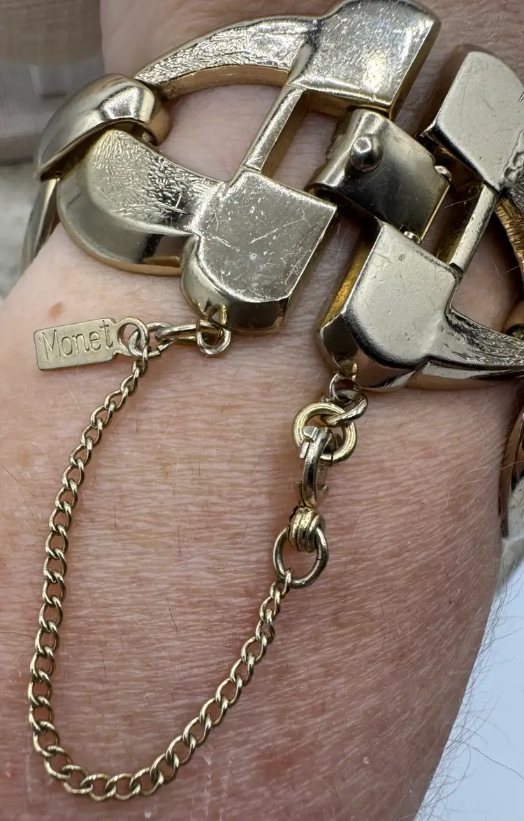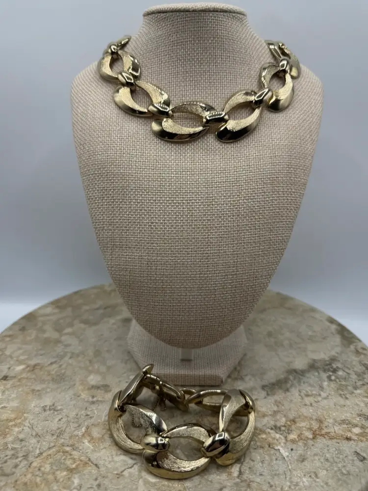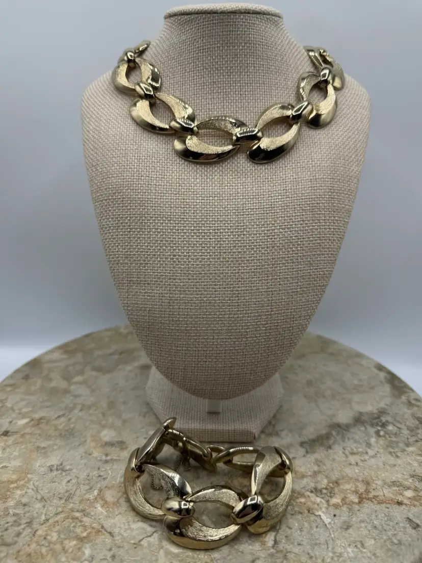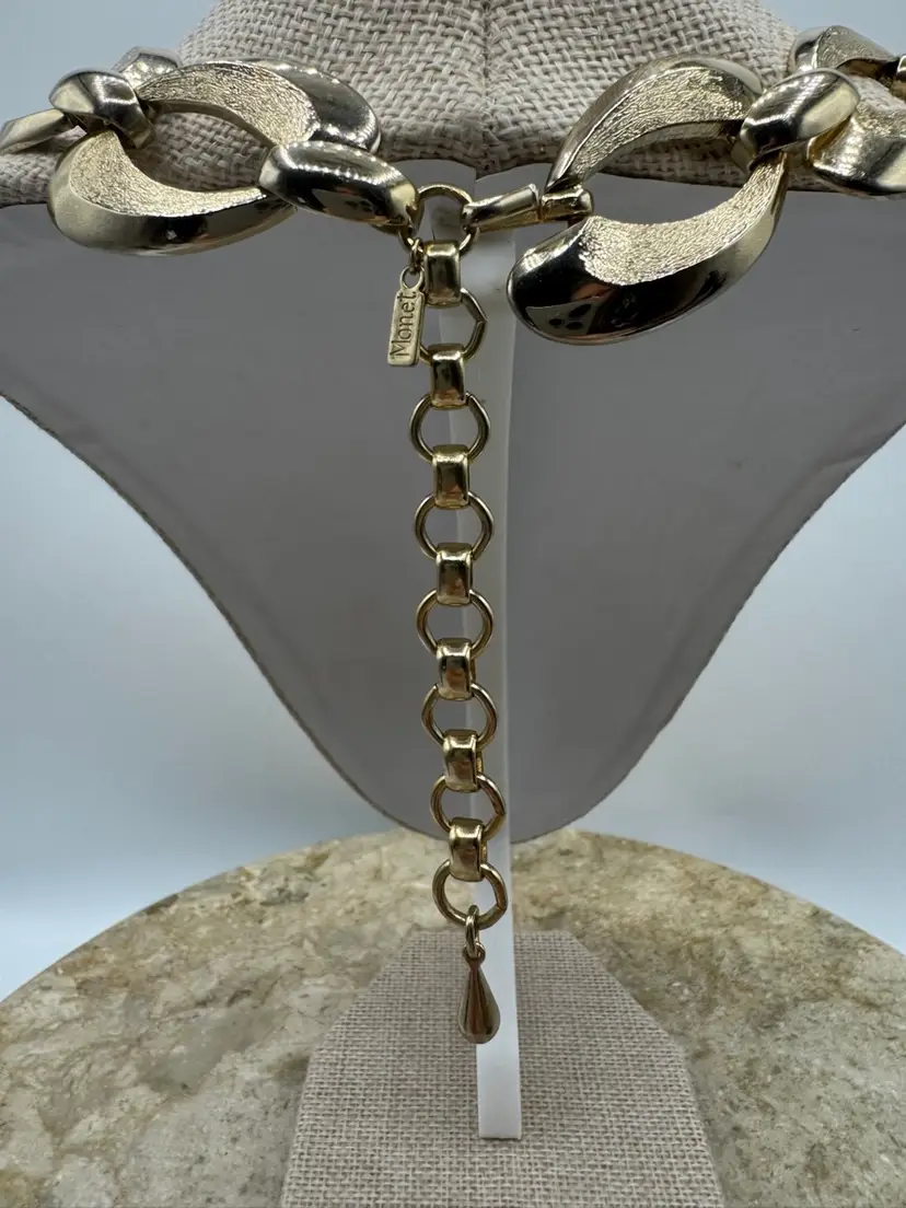Vintage Monet Retro Heavy Gold Plated Double Texture Link Chain Necklace & Bracelet Set. Great vintage condition. Necklace 16” with 3” extender Bracelet is 6 3/4 inches with protective chain.