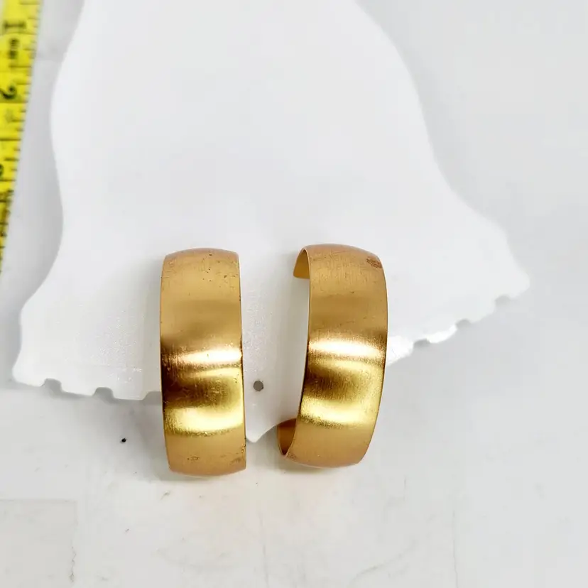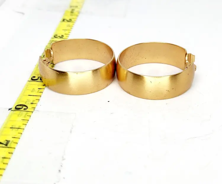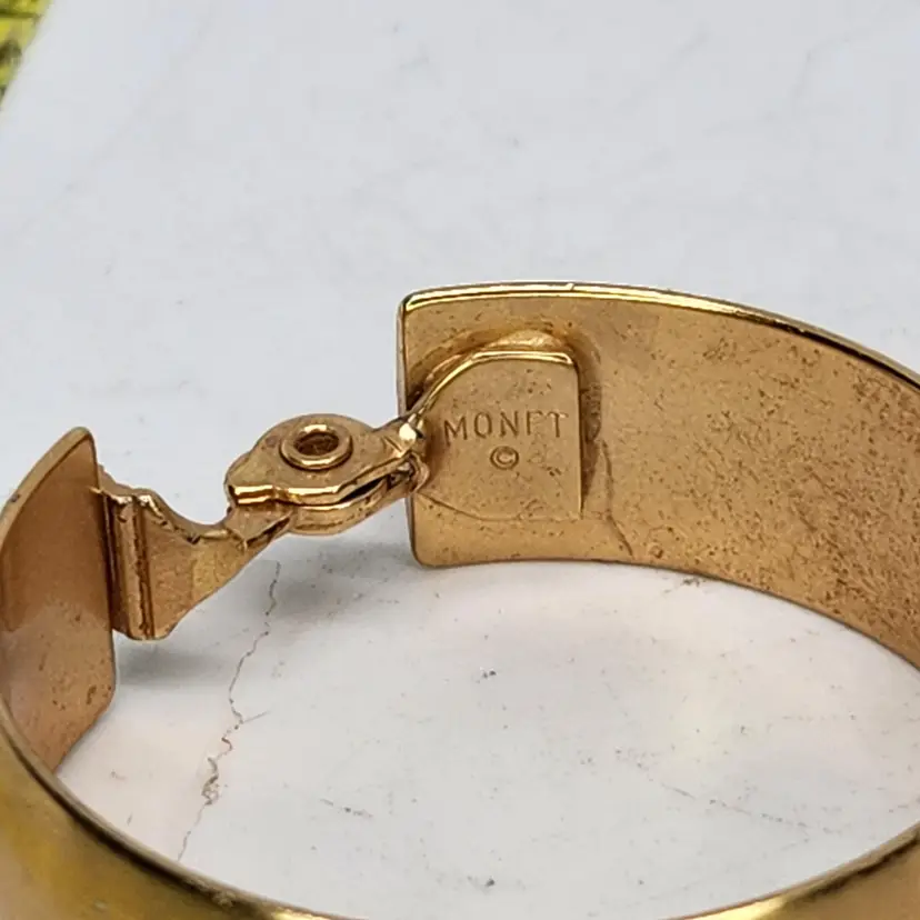 Vintage Monet Signed Brushed Chunky Wide Hoop Gold Tone Clip On Earrings Classic