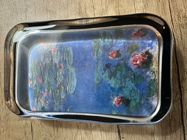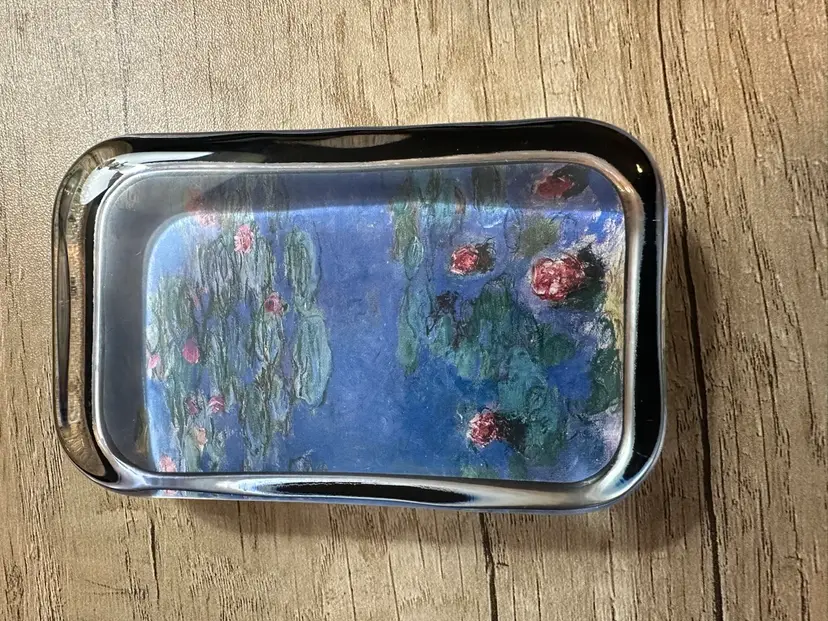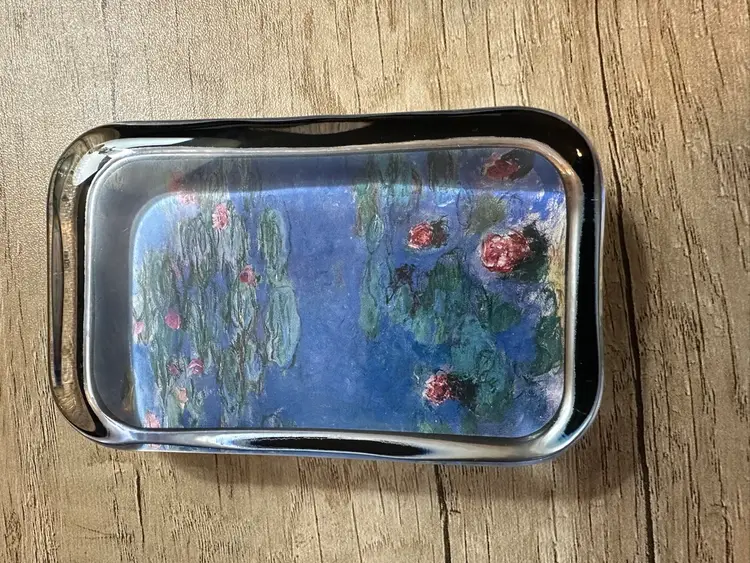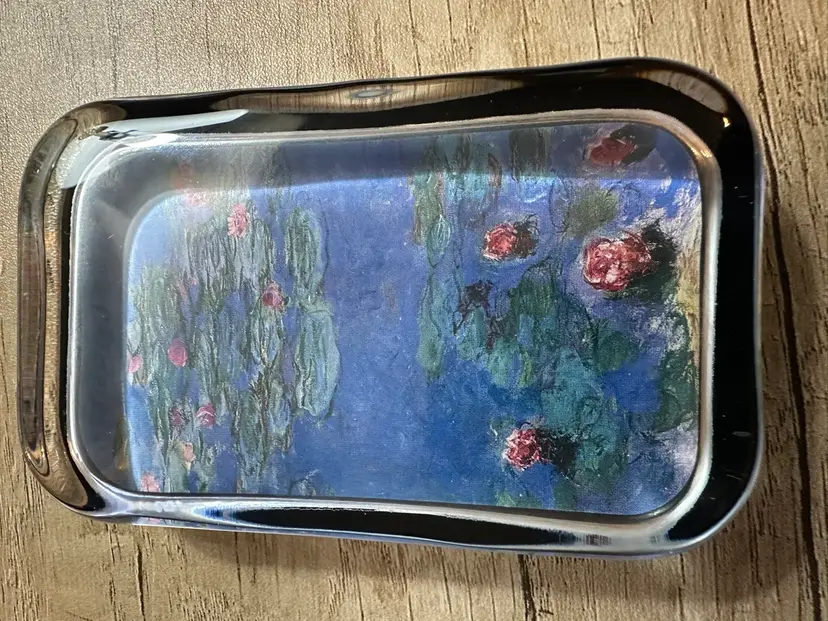 Vintage Monet Waterlilies MADE IN ENGLAND BY VIVANT GLASS PAPER WEIGHT (missing the sticker) 4 x 2.5 x 7/8 good condition