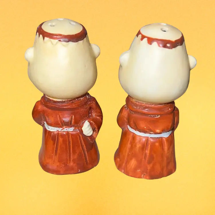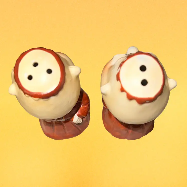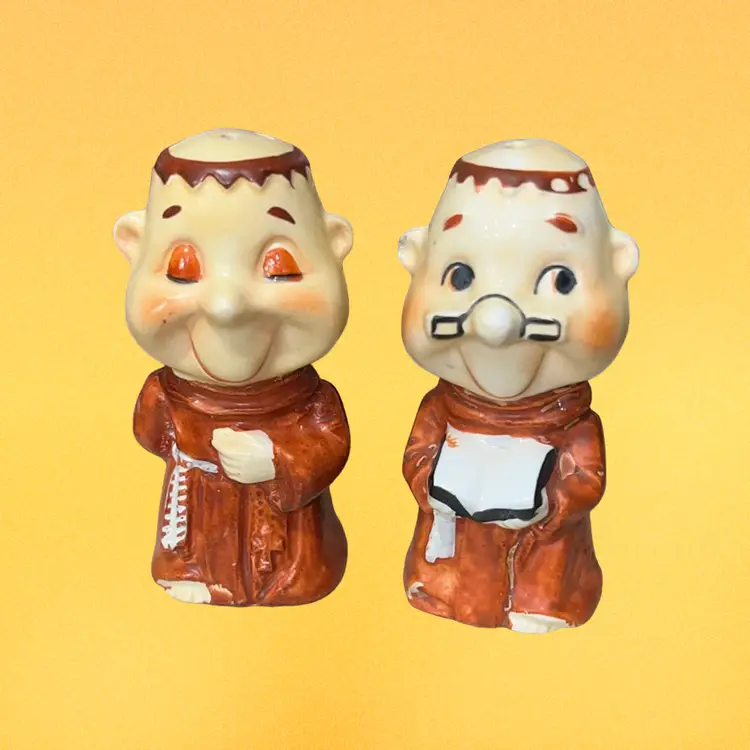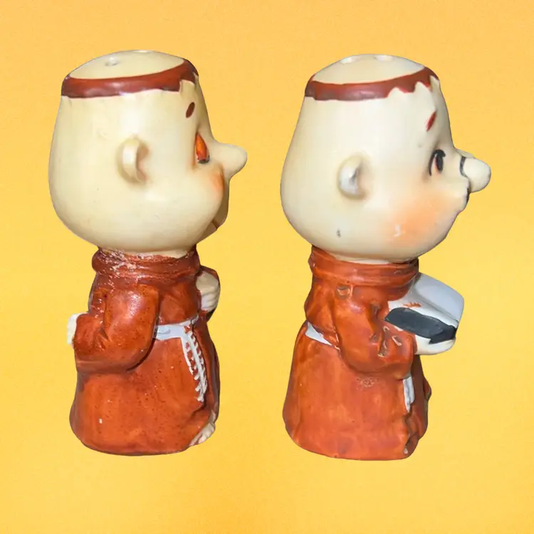 Ceramic friars stoppers intact. 1970s Japan. Stoppers intact. 3”H x 1.5”W. Excellent condition.