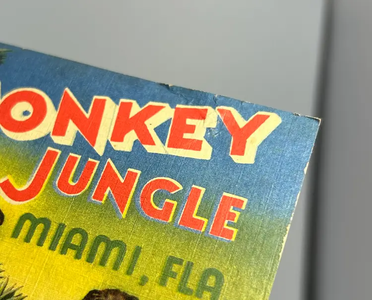 Has creases on corners and major crease on top and in middle where it looks to have been folded. Does not lay flat. Color still vibrant with common discoloration from age. Please look over and enlarge photos for overall condition.