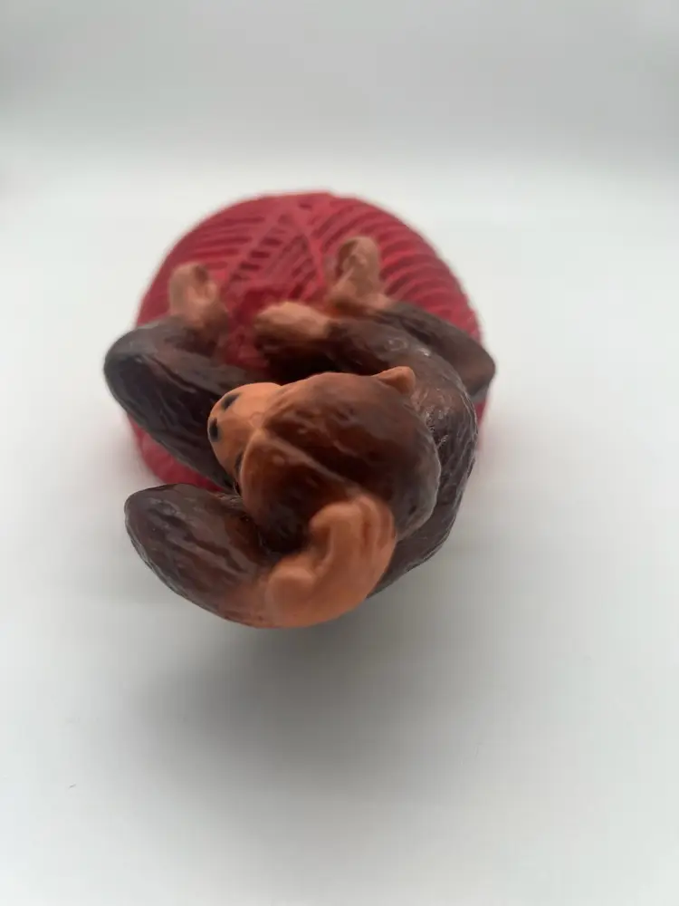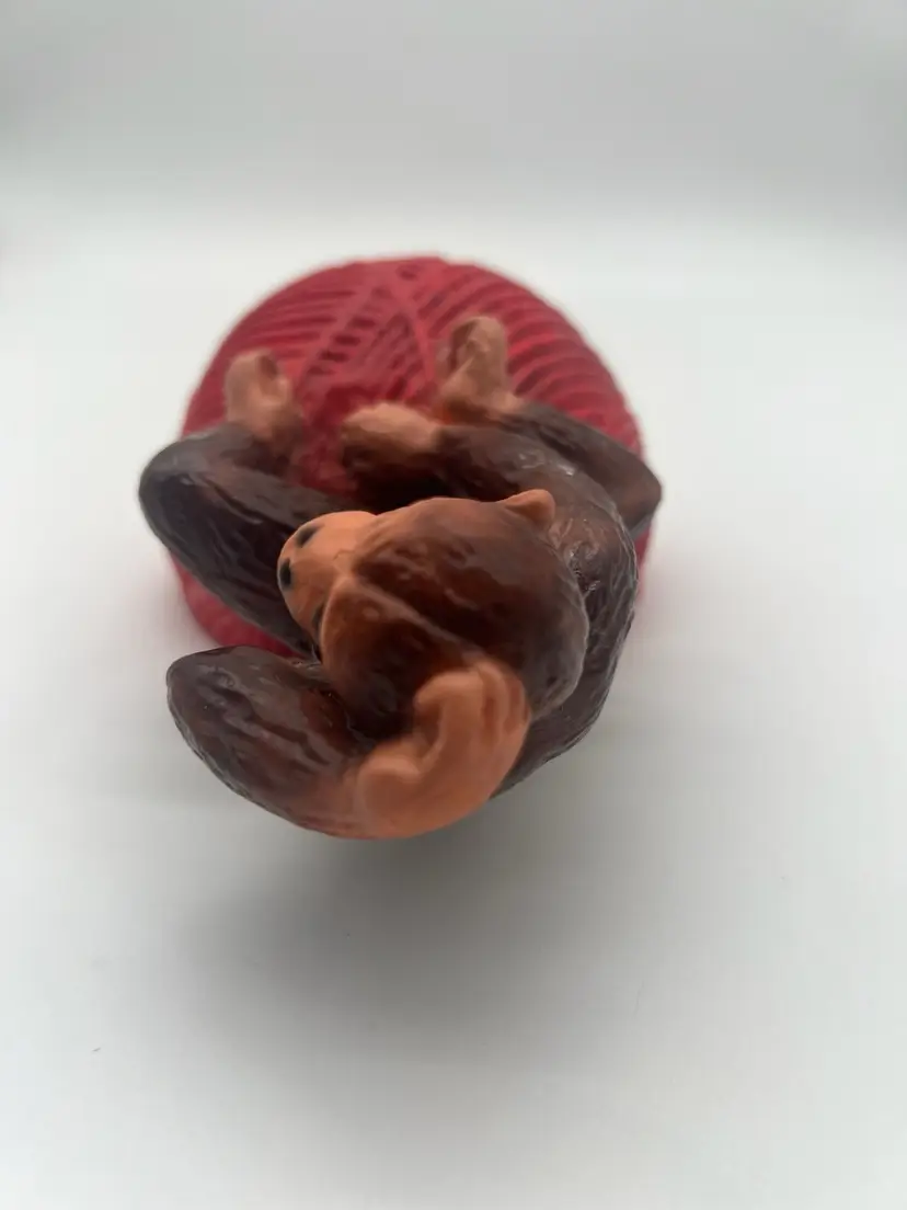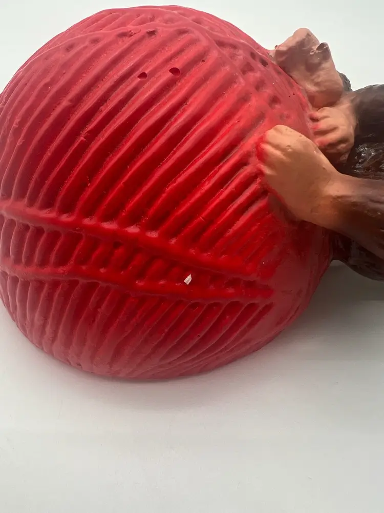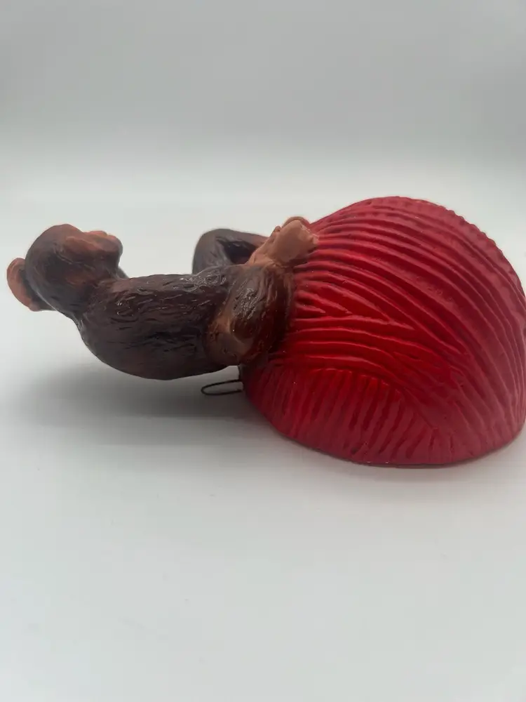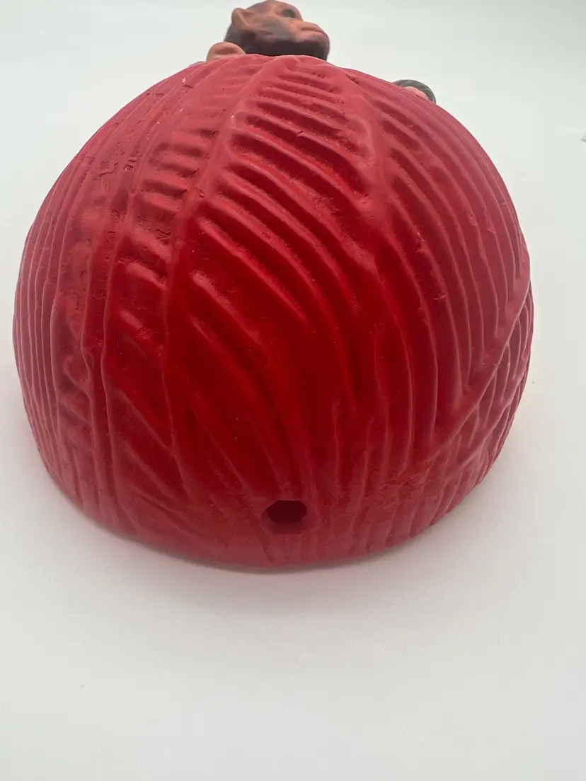 Very good vintage condition. Measures approximately 6” tall and the yarn ball has a diameter of approximately 4”