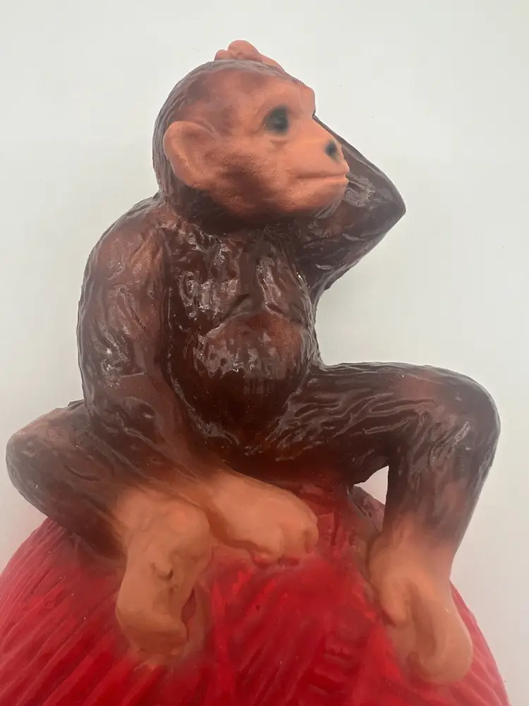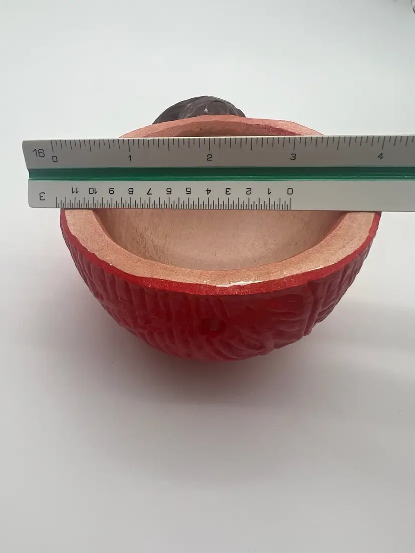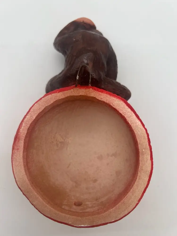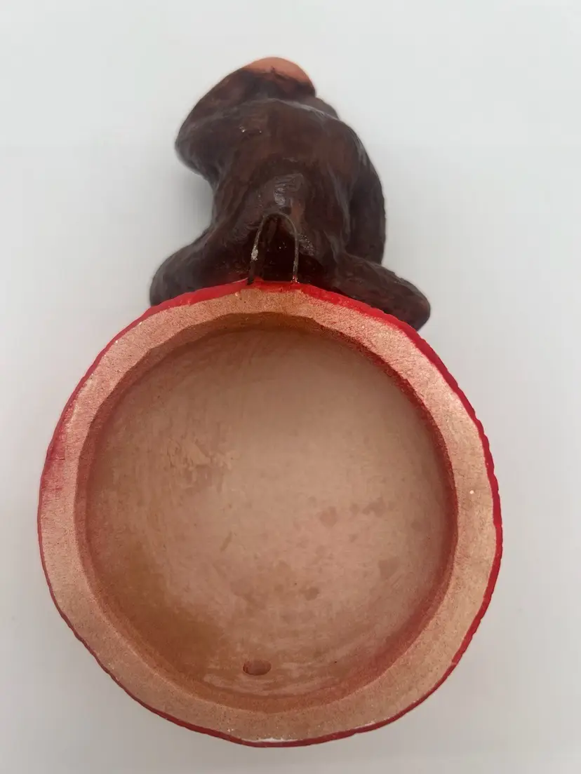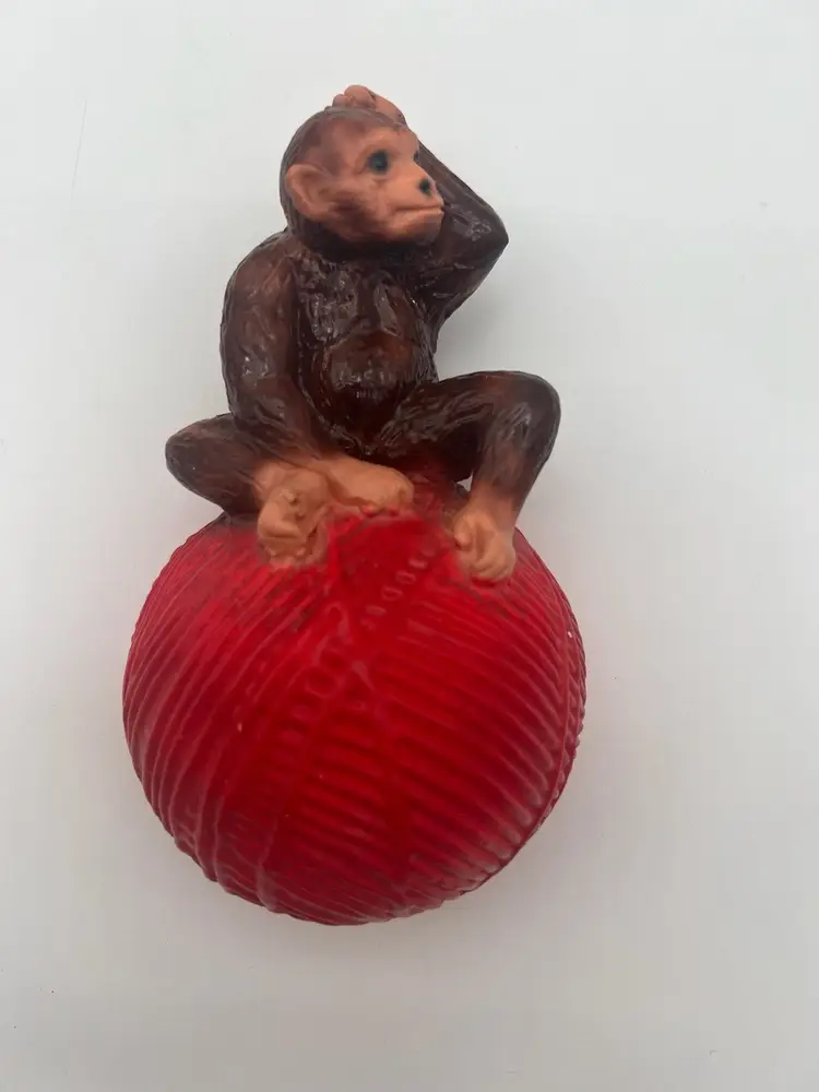 Very good vintage condition. Measures approximately 6” tall and the yarn ball has a diameter of approximately 4”