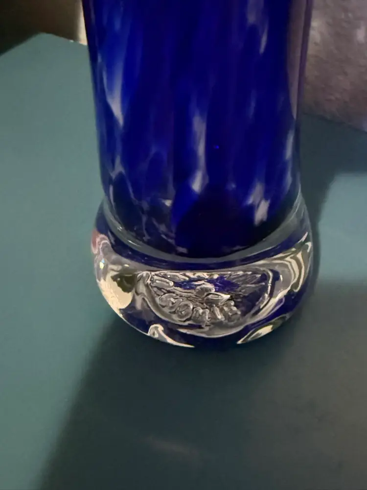 Mint condition. No visible chips, cracks, scratches, cloudiness, or signs of repair. It displays beautifully. “ Embossed stamped” name Monte Dunlavy Features the typical pontil mark on the bottom.