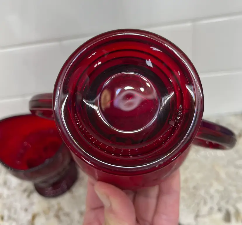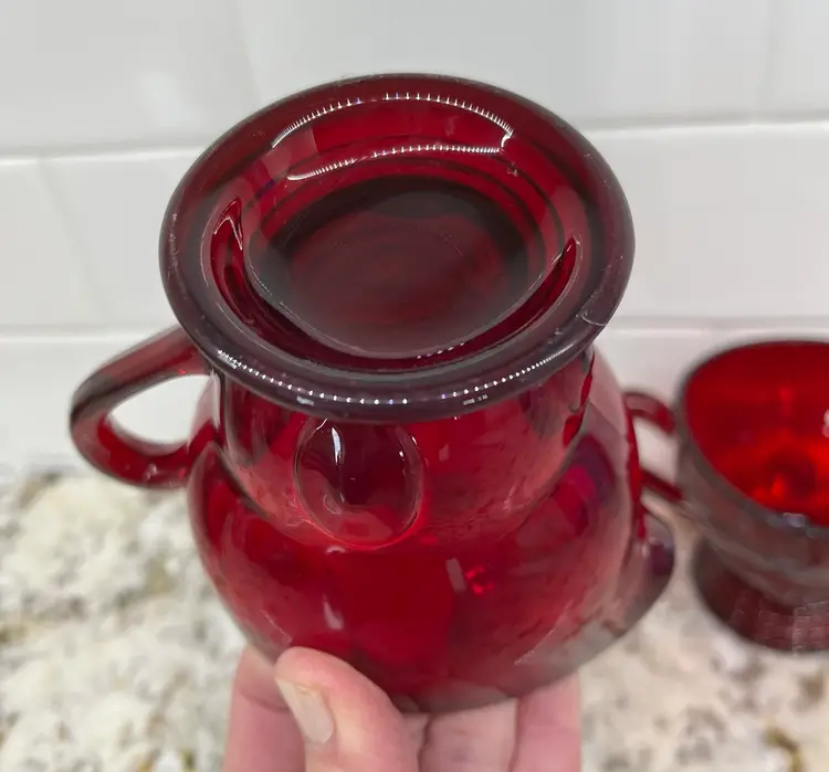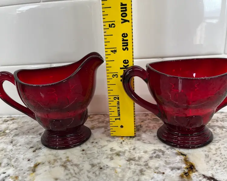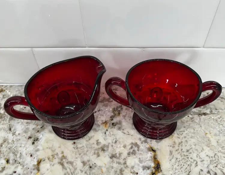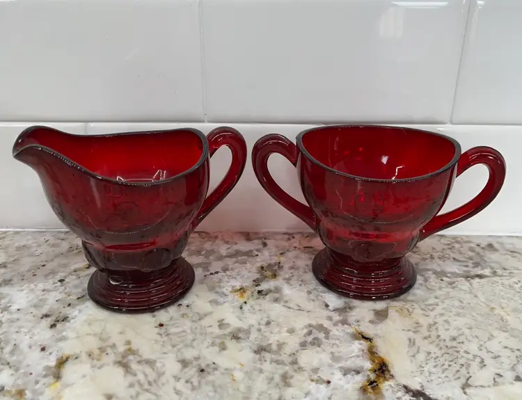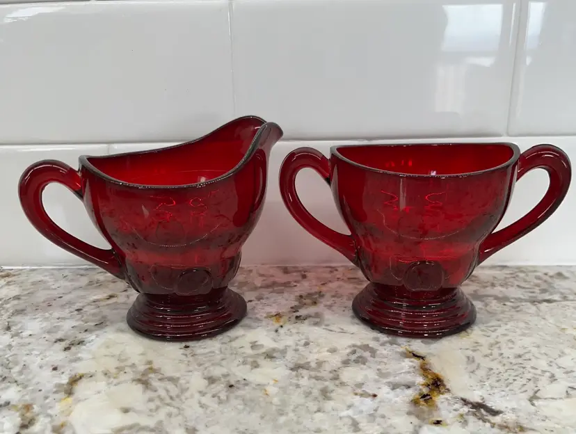 Beautiful Vintage Ruby Red Moon Drops Creamer & Sugar. Excellent condition. No chips or cracks.