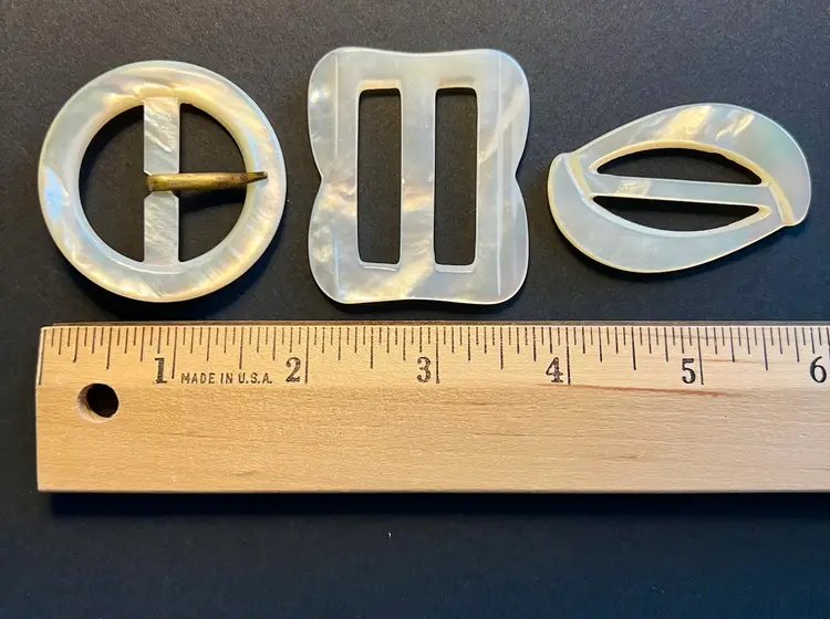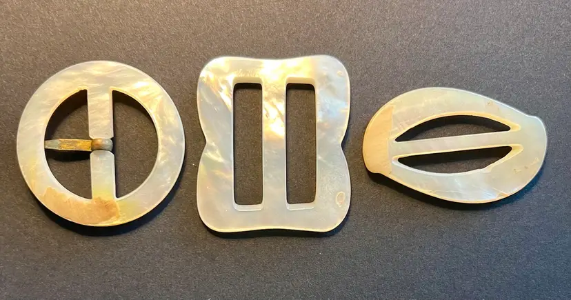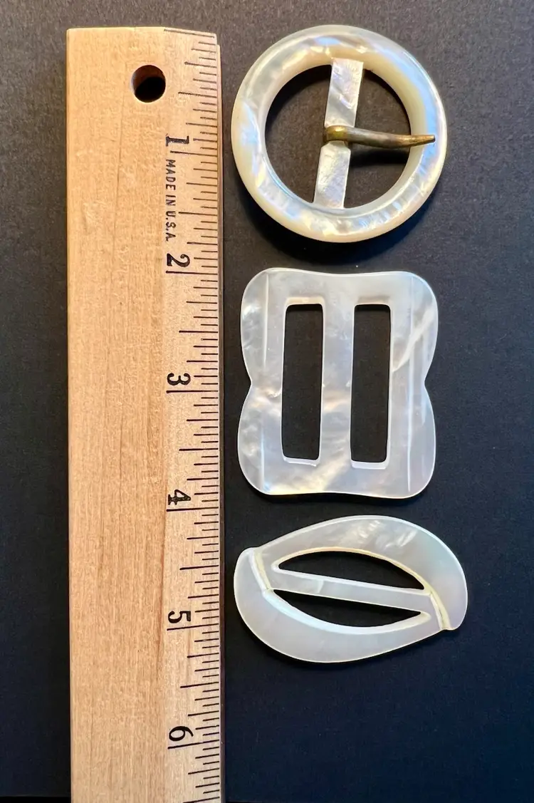 Vintage MOP Mother of Pearl Belt Buckle Scarf Clip Carved Variety 3 PCS #ofc-3