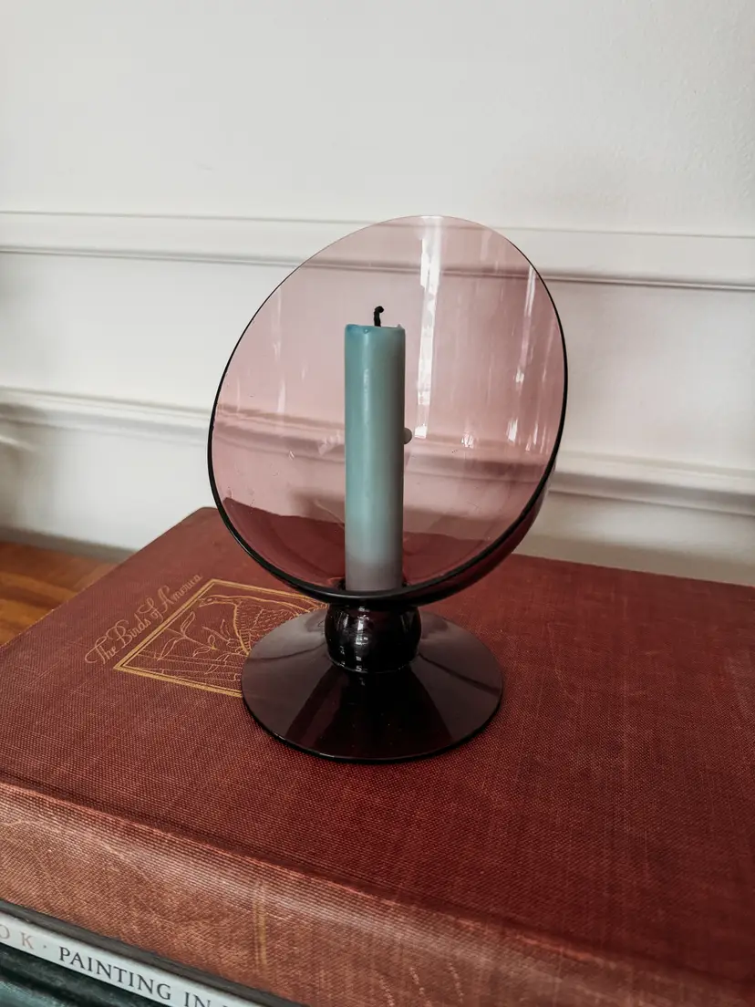 Highly collectible and absolutely stunning! Fits a taper candle holder or can be displayed on its own. Priced extremely low because there are many tiny chips around the thin class rim. They are not noticeable unless you examine closely so they are not easily detected unless you're looking for them!