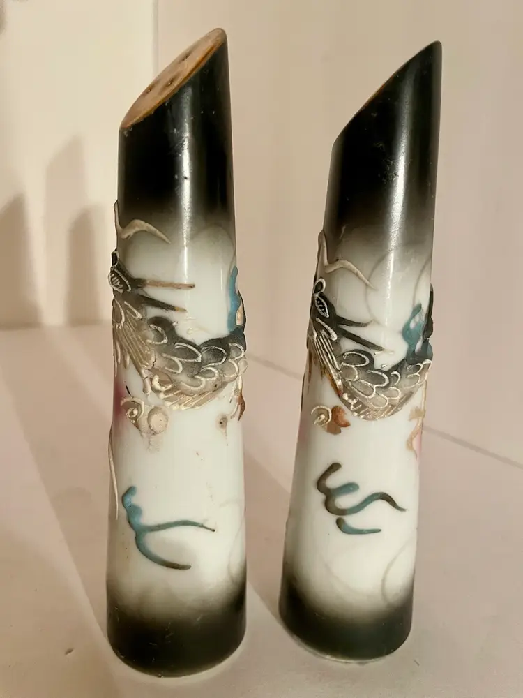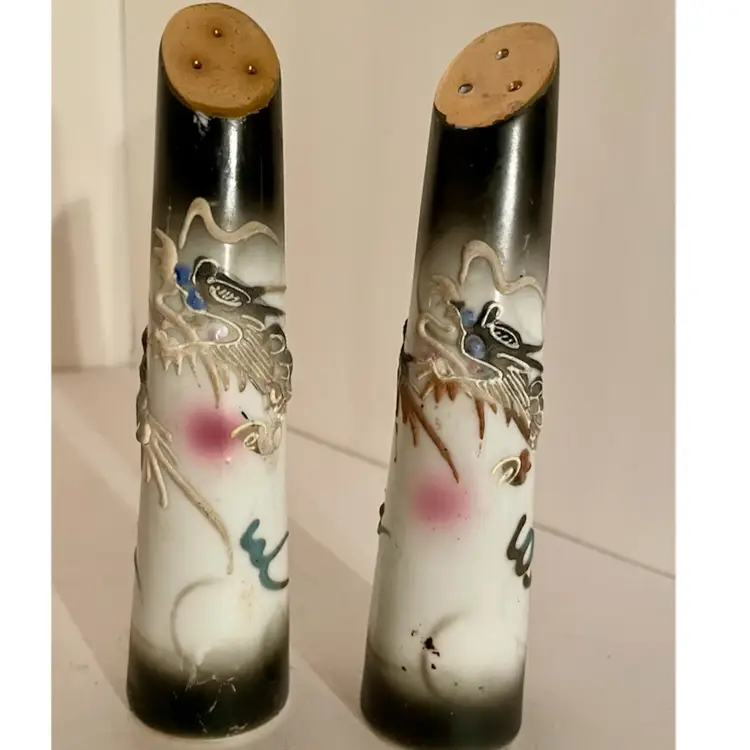 Vintage Moriage DragonWare Salt And Pepper Shakers. Normal wear. See pics. Condition Is Used. Shipped with USPS Mail
