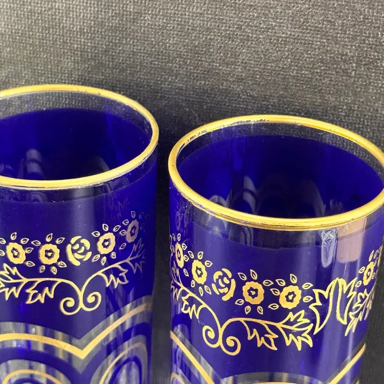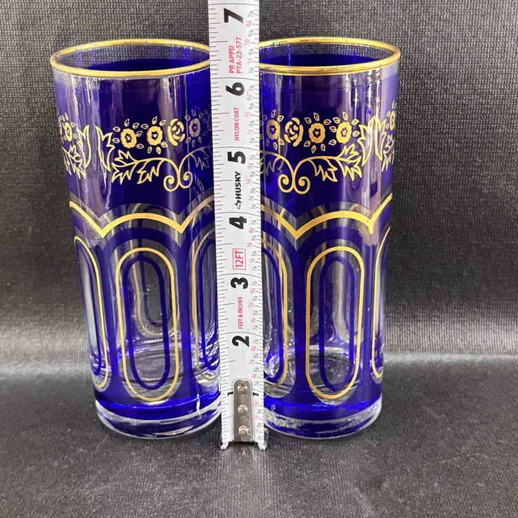 No chips or cracks. Minimal wear to the gold around rim. See photos. Approximately 6.5” tall.
