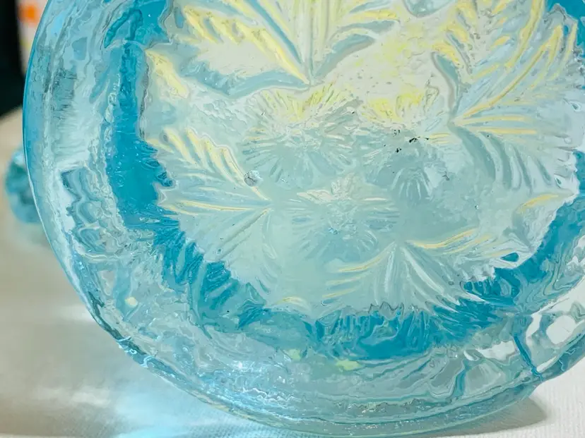 Darling vase in a beautiful light aqua blue. Quite stunning. Approximately 5.5” tall with 3.5” diameter who handle super cute