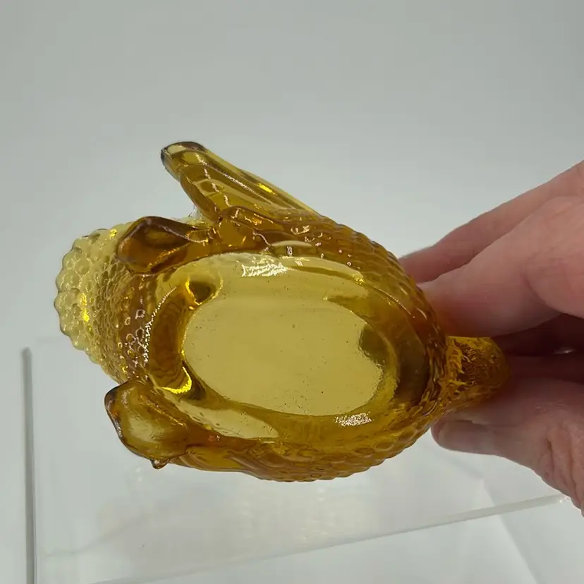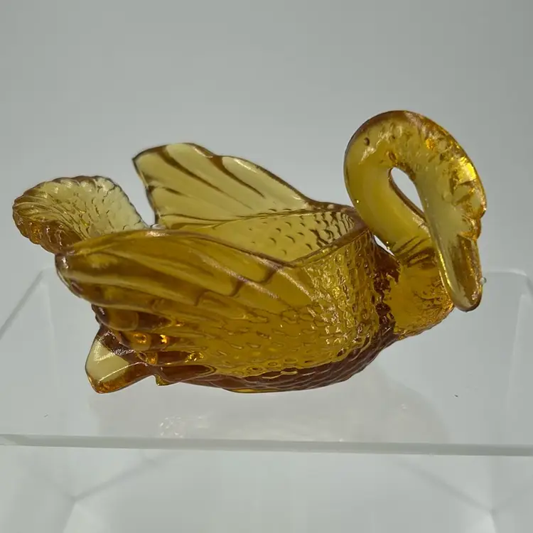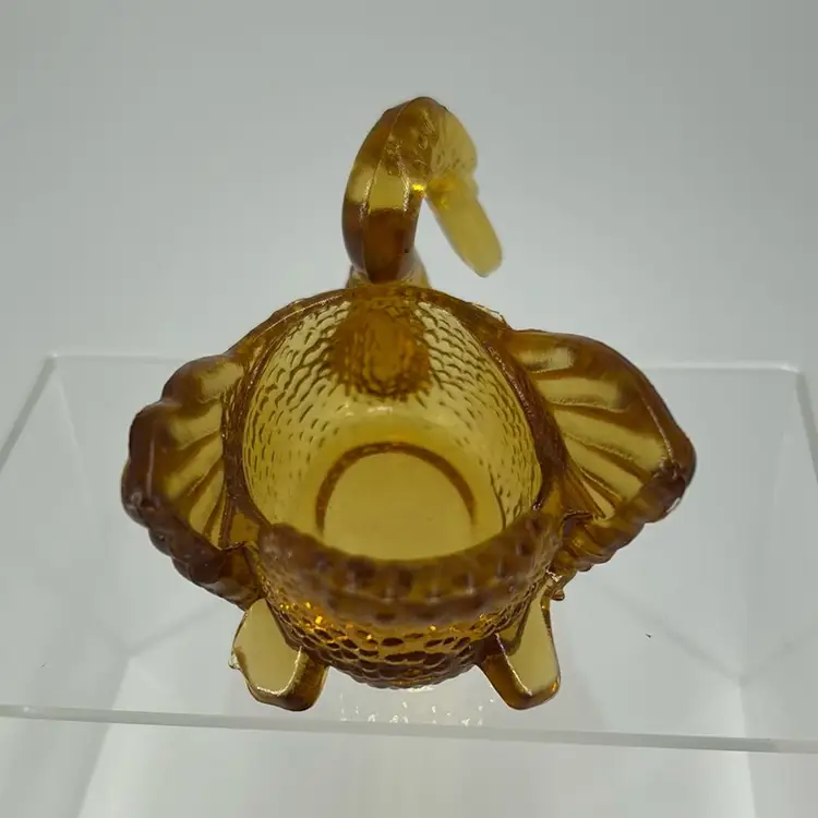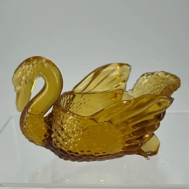 This item is an amber colored glass swan figurine, used as an open salt dip or seller. May I measure your glass using molds originally from Cambridge glass.