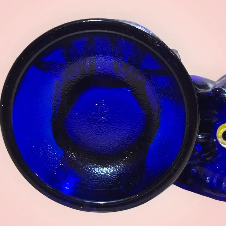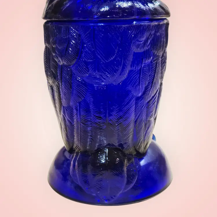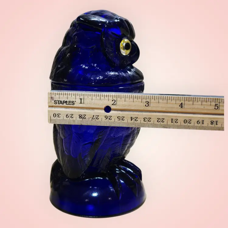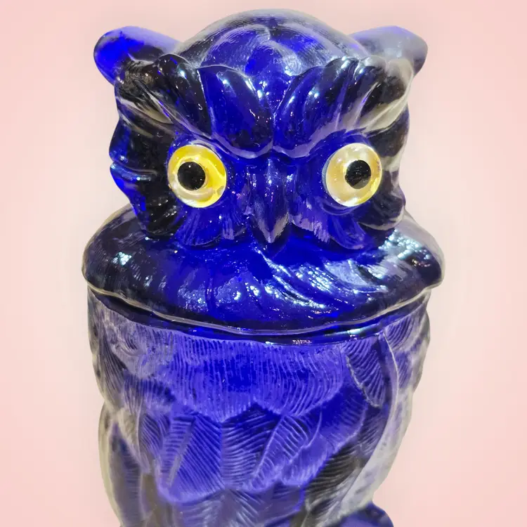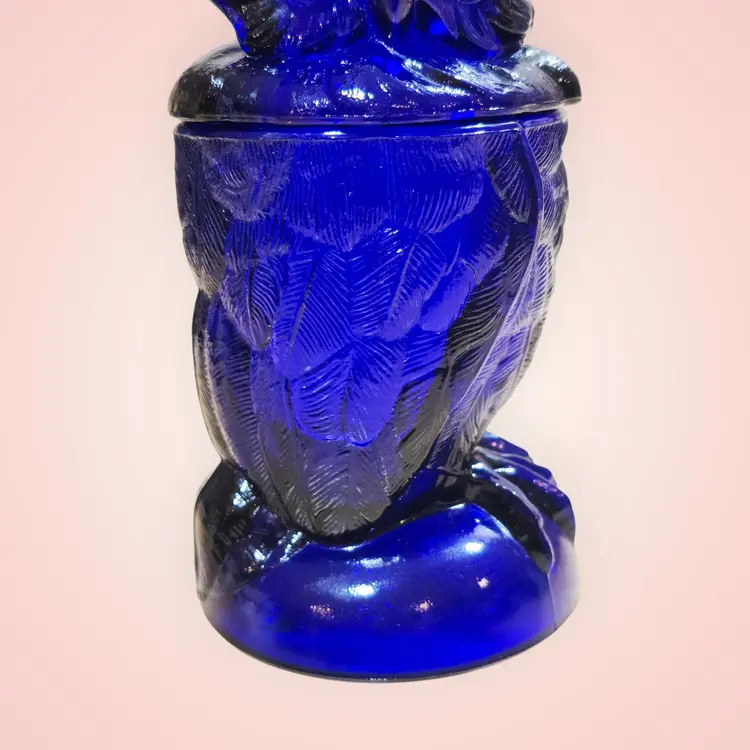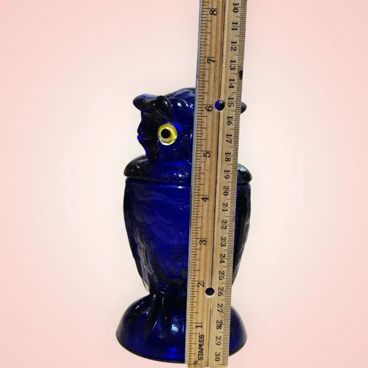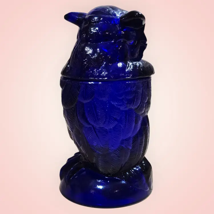 Vintage Mosser Cobalt Blue Glass Toby The Owl Covered Dish Candy Jar 6.5" Tall