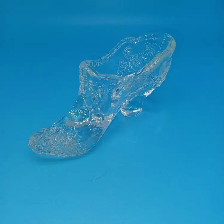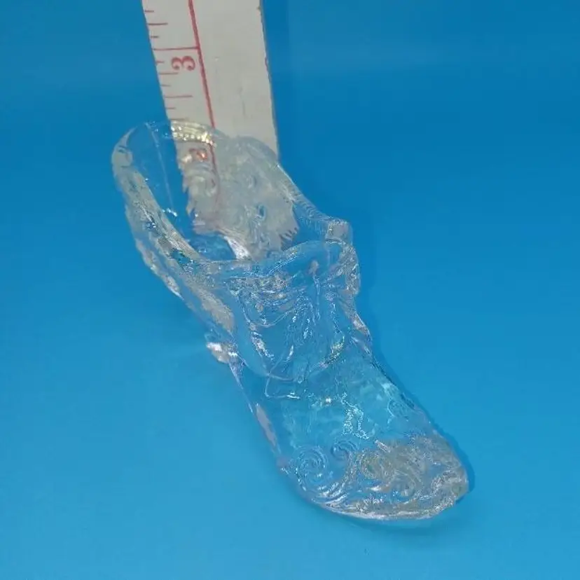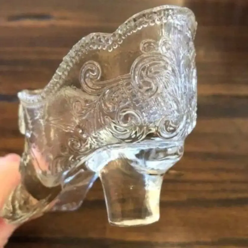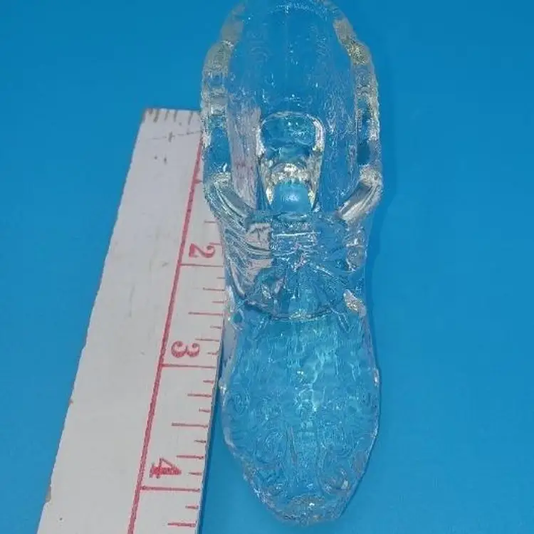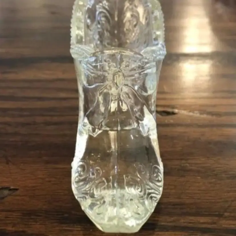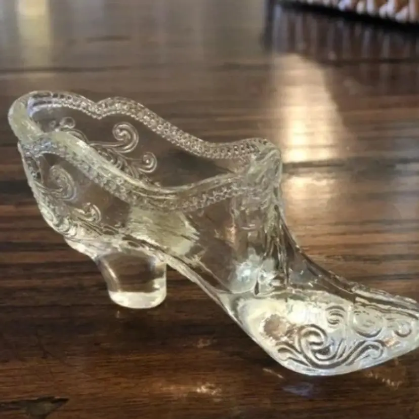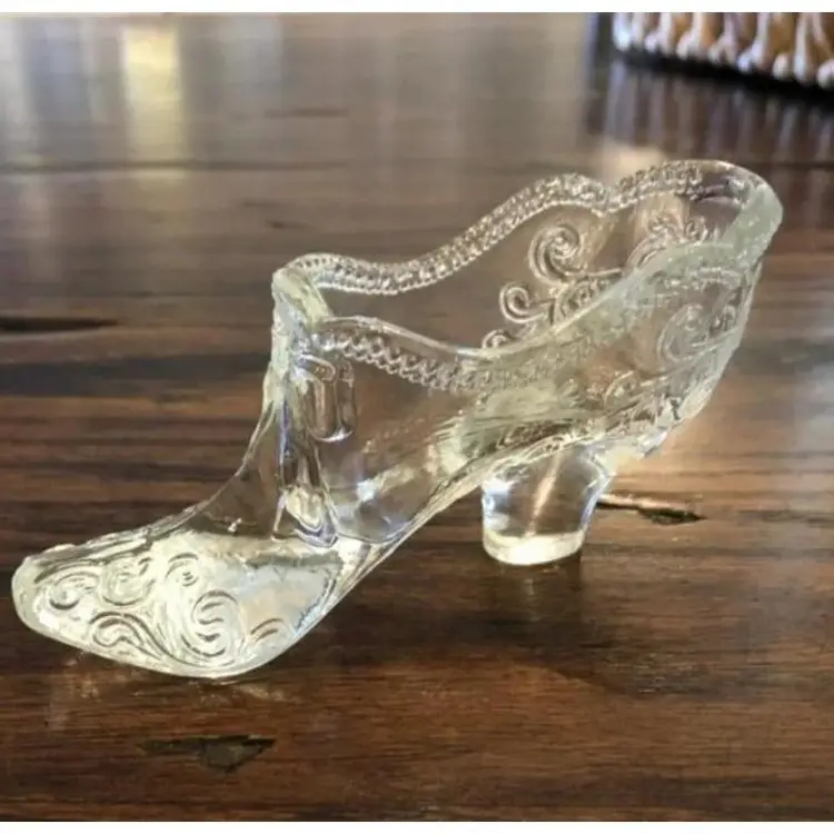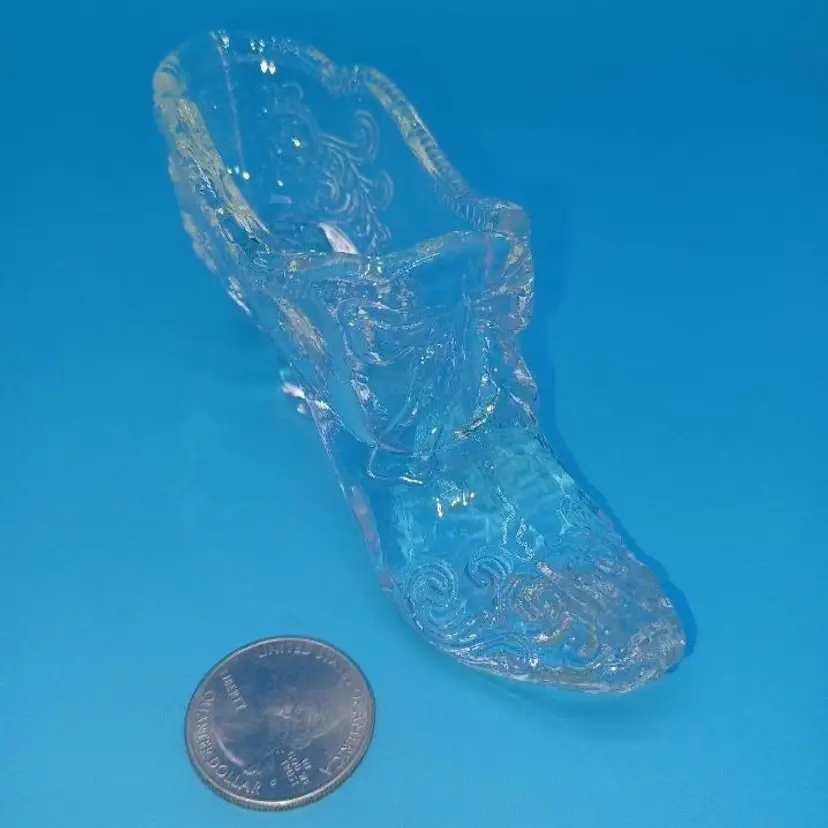 Vintage Mosser Crystal Clear bow & floral glass high heel shoe trinket dish in excellent vintage condition nice bright shiny no Nicks flea bites Etc measures approximately 4 1/2 in long 2 1/2 in tall Please see all pictures as they're the best description all items from a smoke-free home with pets experienced fragile shipper