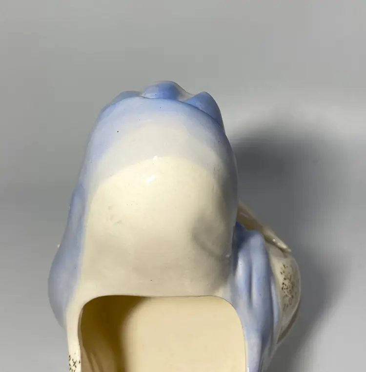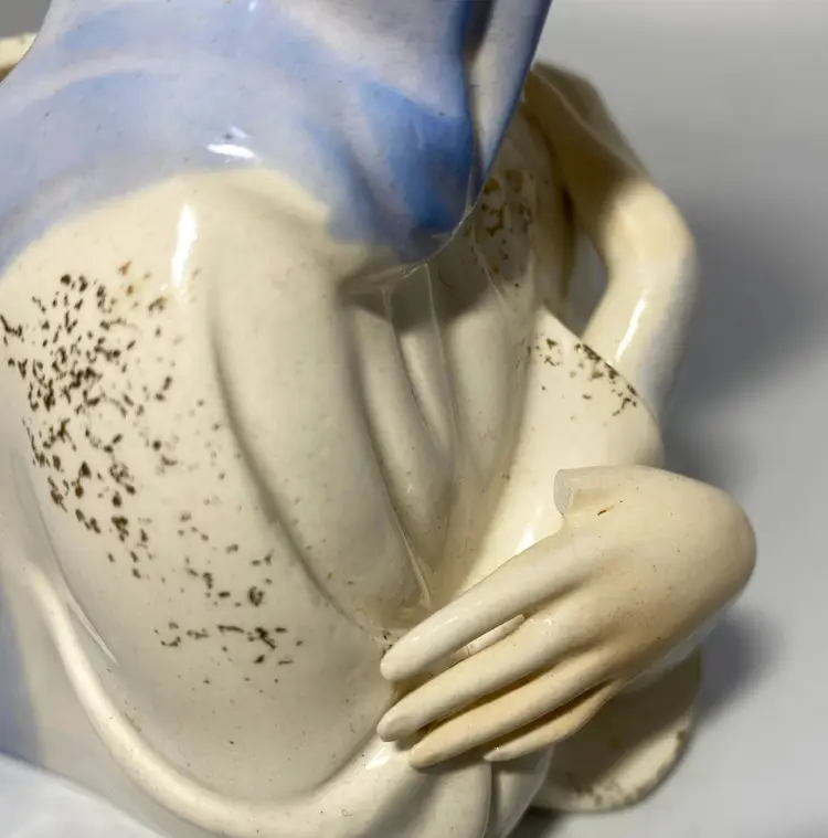 No crazing, her thumb on her left hand is broken off - see last photo otherwise no cracks or chips anywhere else. Has '4155' on bottom after research was found this piece was made by a company named Shafford Japan. It used to have a sticker right above the numbers.