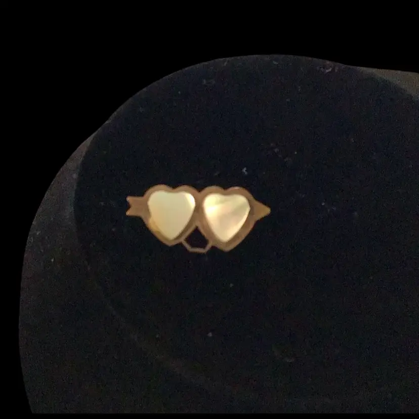 M.O.P. Hearts on small brass 1940s pin/ brooch. #149