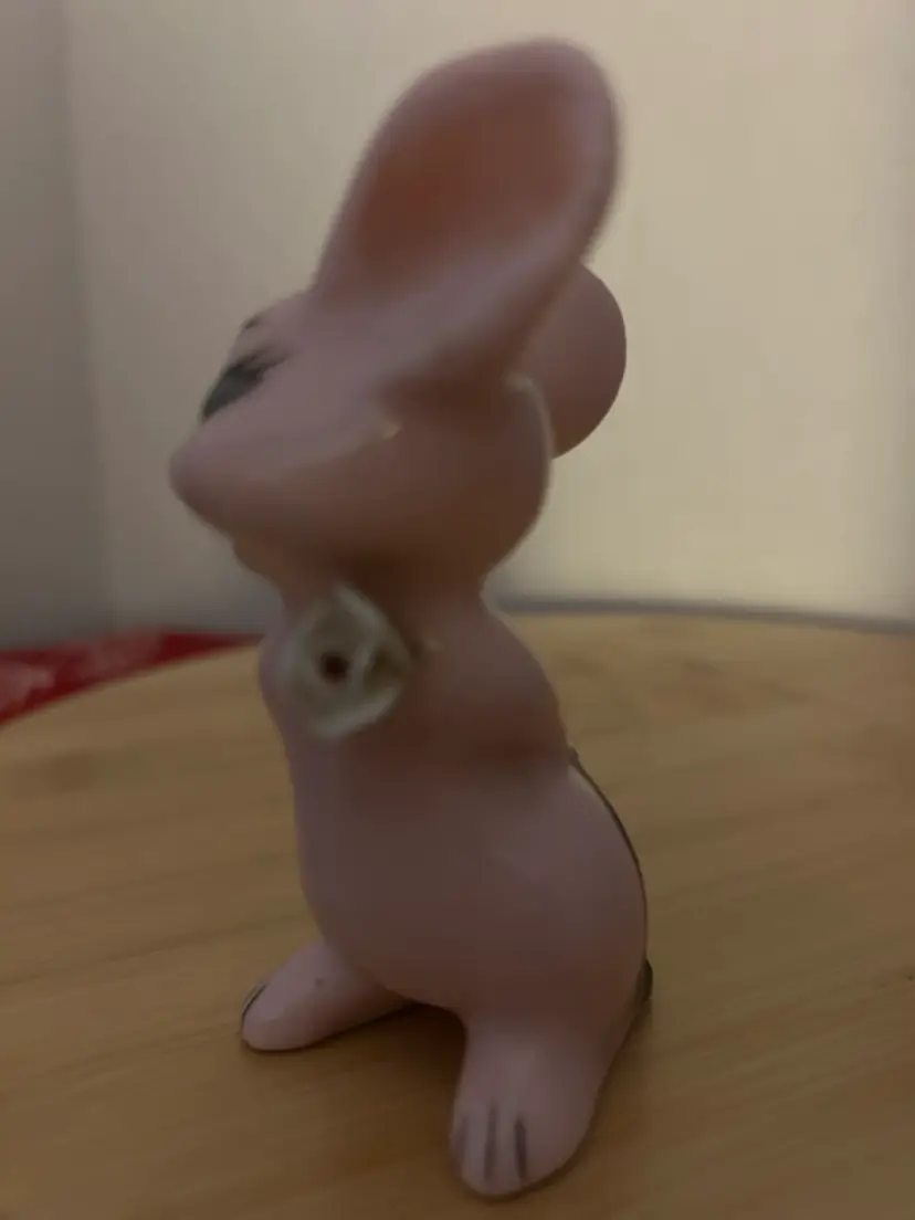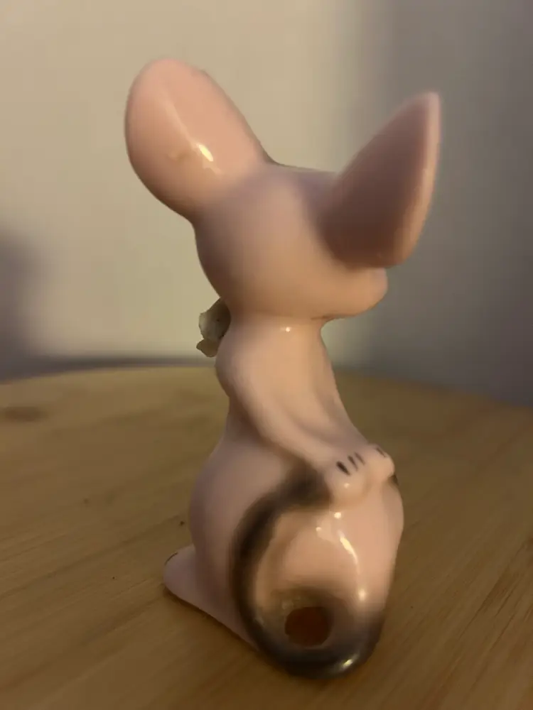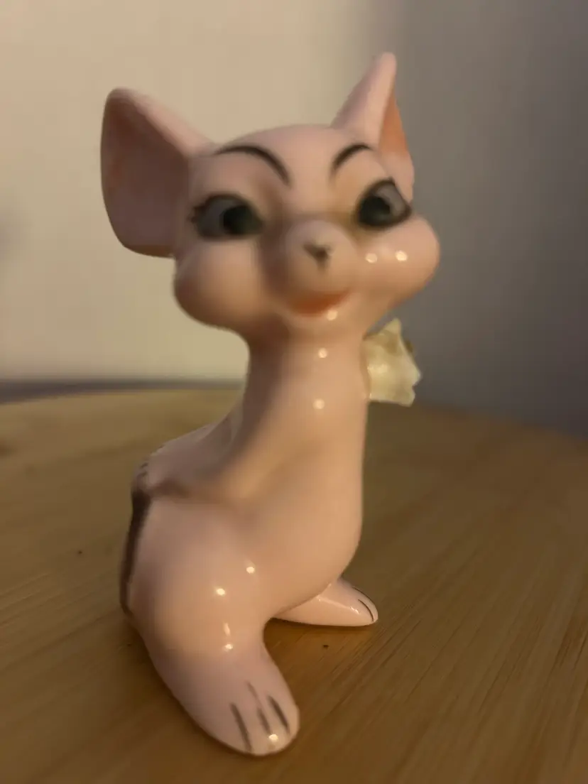 In great shape with no chips or cracks.Is wearing a beautiful flower. Made in Japan. Measures: 3& 1/2 inches tall.
