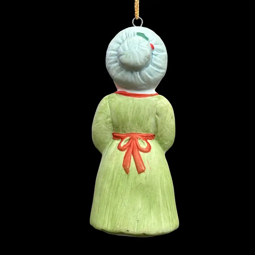 This 1985 Rare Find Ornament is in very good condition. She measures approximately 3.5 inches tall.