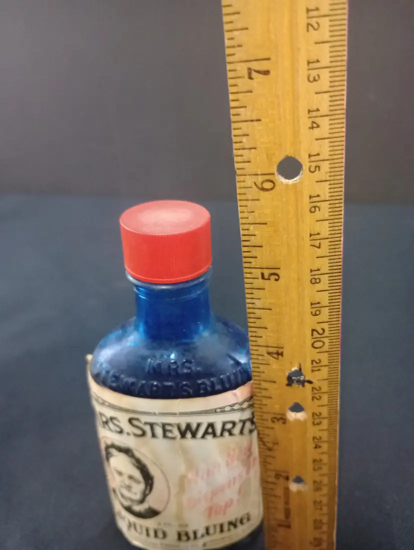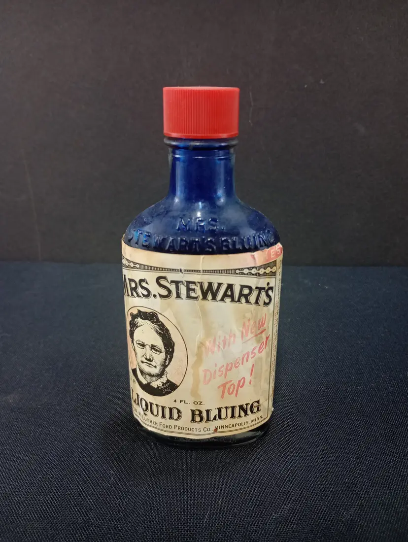 This vintage Mrs Stewarts Liquid Bluing is a wonderful part of beauty history and would appeal to those who collect vintage bottles or vintage beauty memorabilia. This bottle is full of bluing liquid