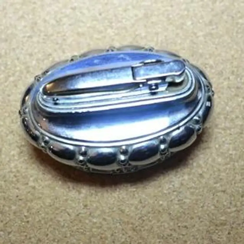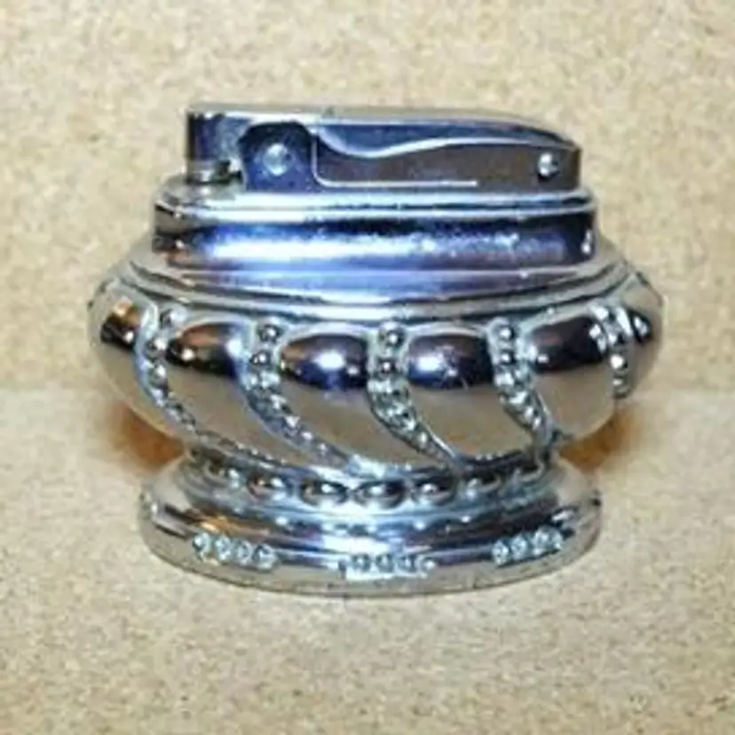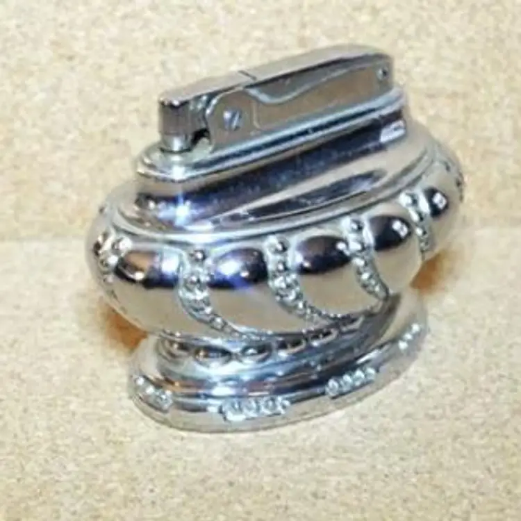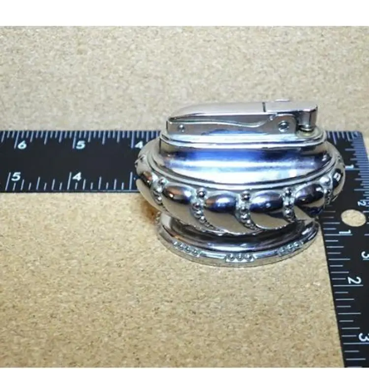 Vintage cigarette lighter made in Japan. Felt bottom for surface protection, some wear in this. Lighter does not currently work, not even spark.