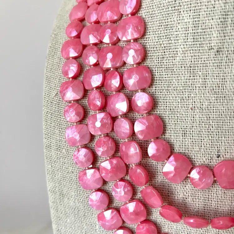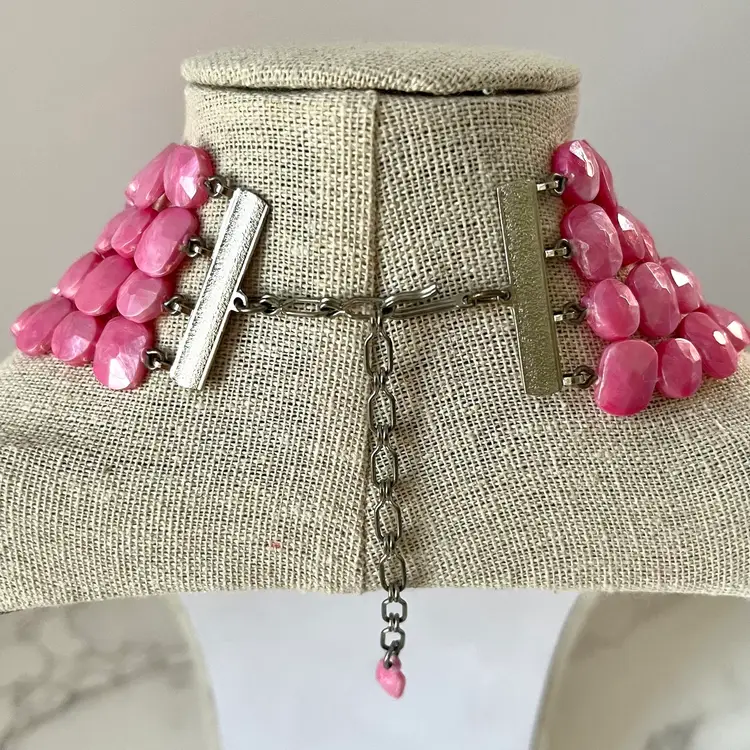 This gorgeous necklace is in excellent condition. The beads are hand knotted and the necklace is adjustable up to 18 inches. It is unsigned.