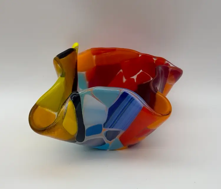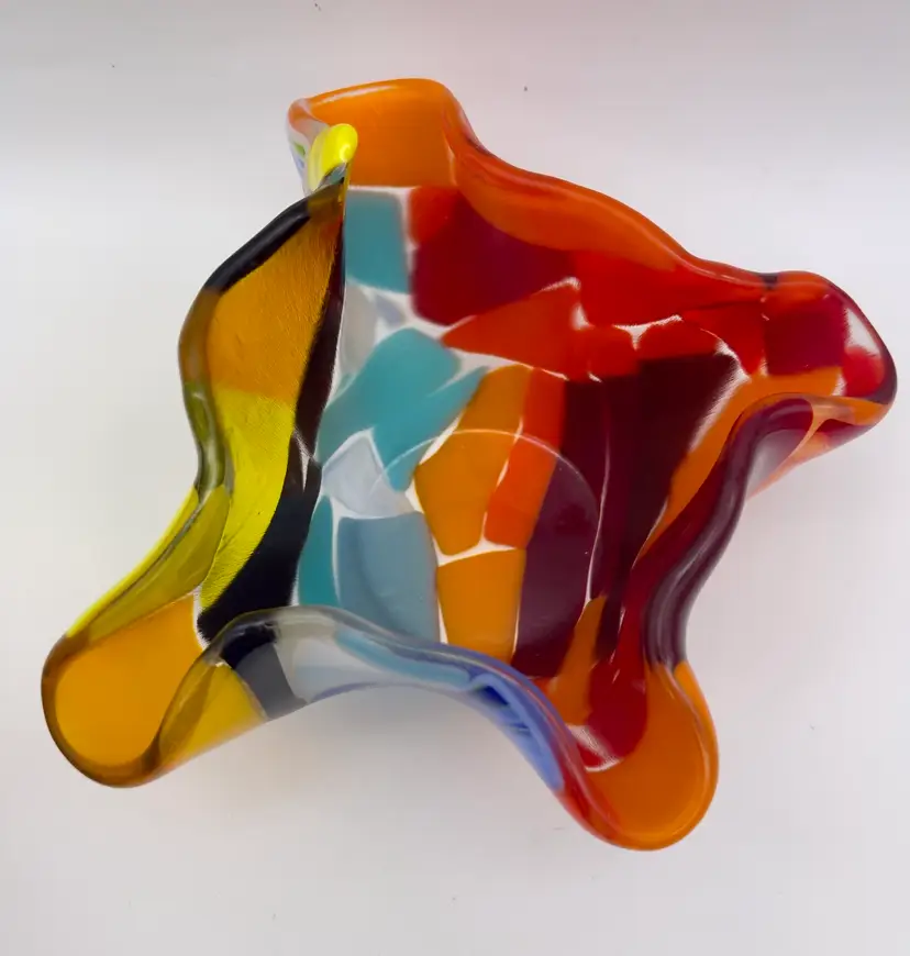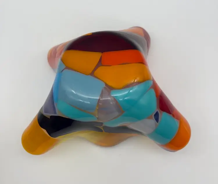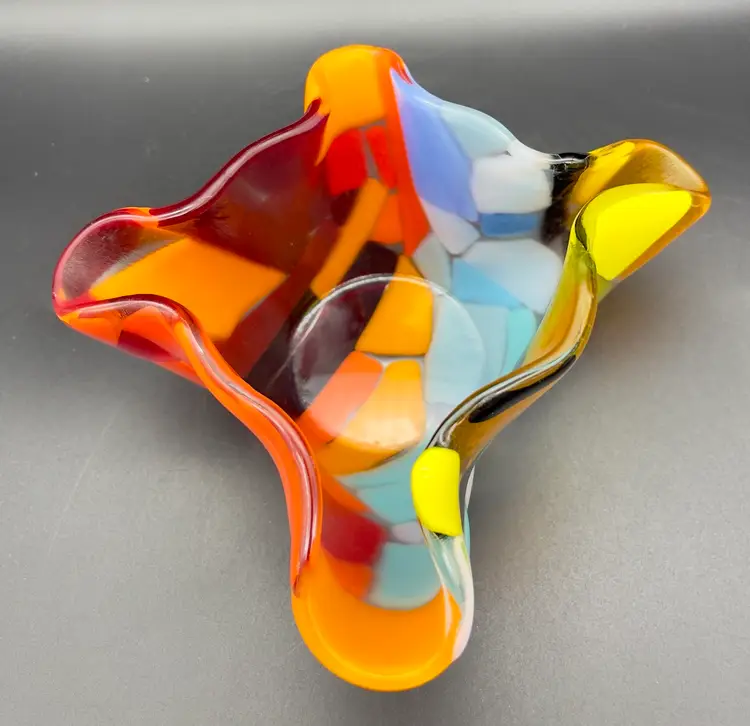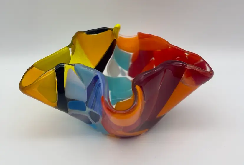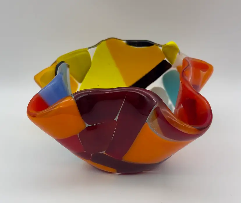 Eyecatching piece! Excellent pre-owned condition. No chips, cracks or blemishes. No signature or marking. Dimensions: 6"W x 3.25H x 3" base diameter.
