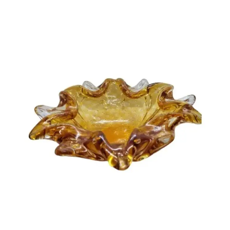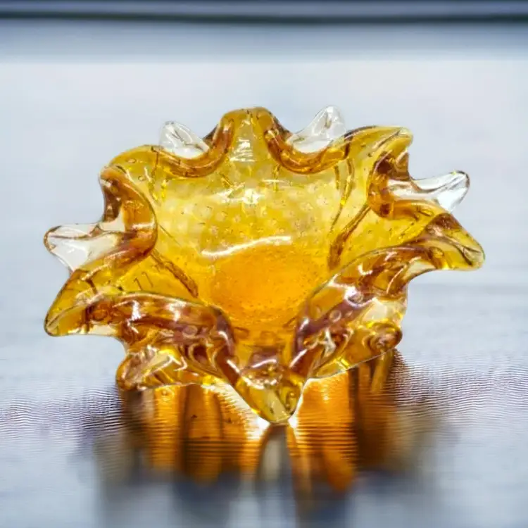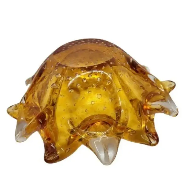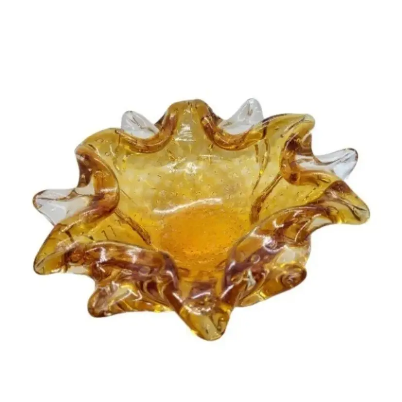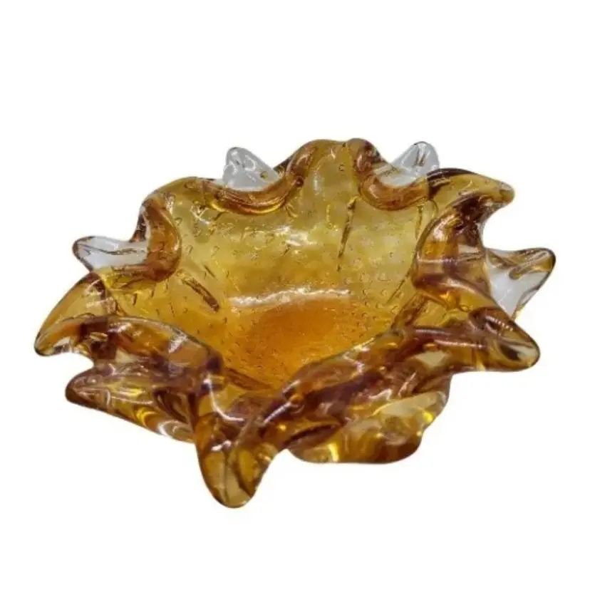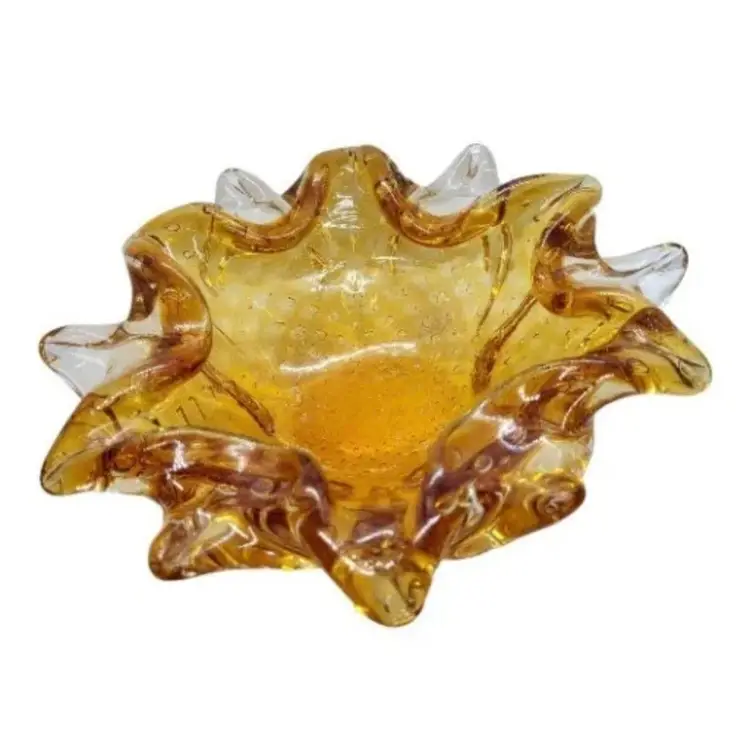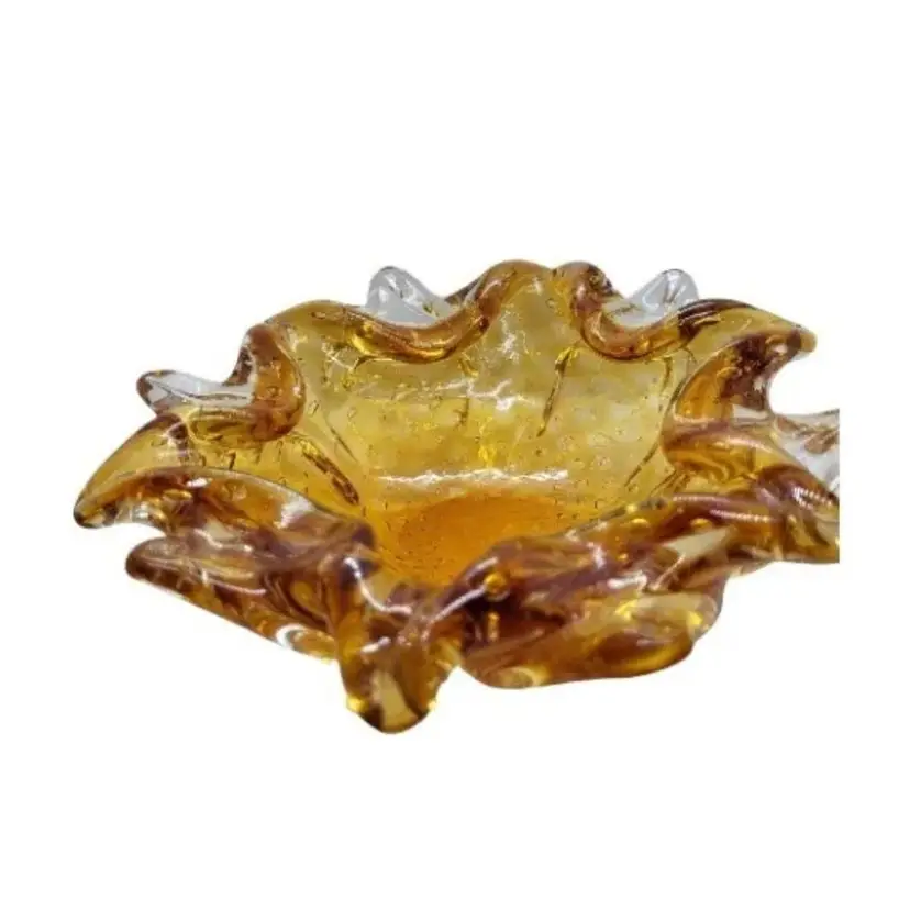 Beautiful amber and clear bowl. There is a chip on the base which is shown in the photos.