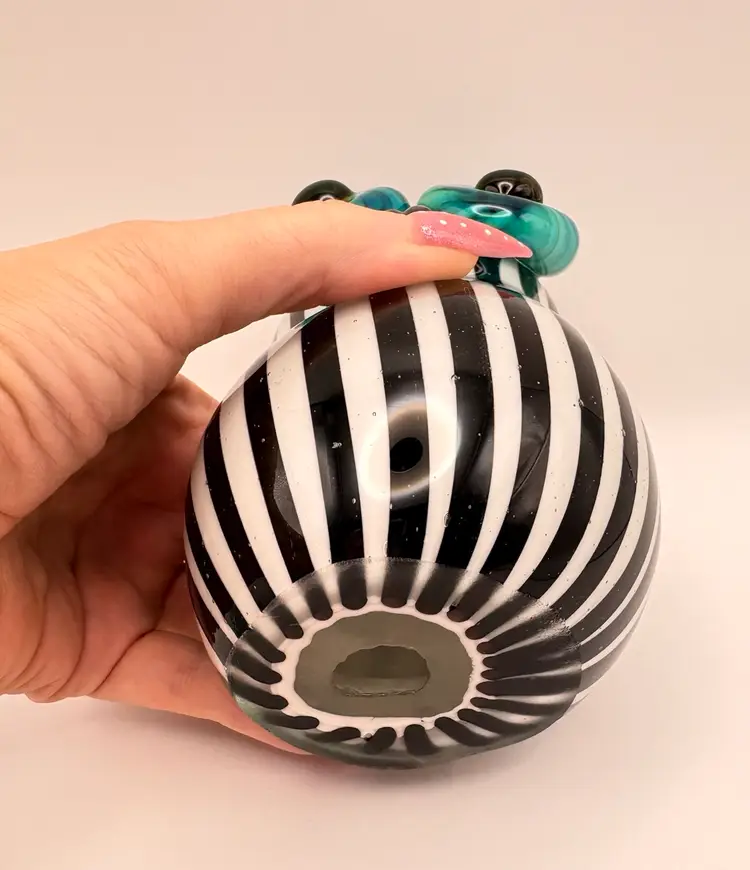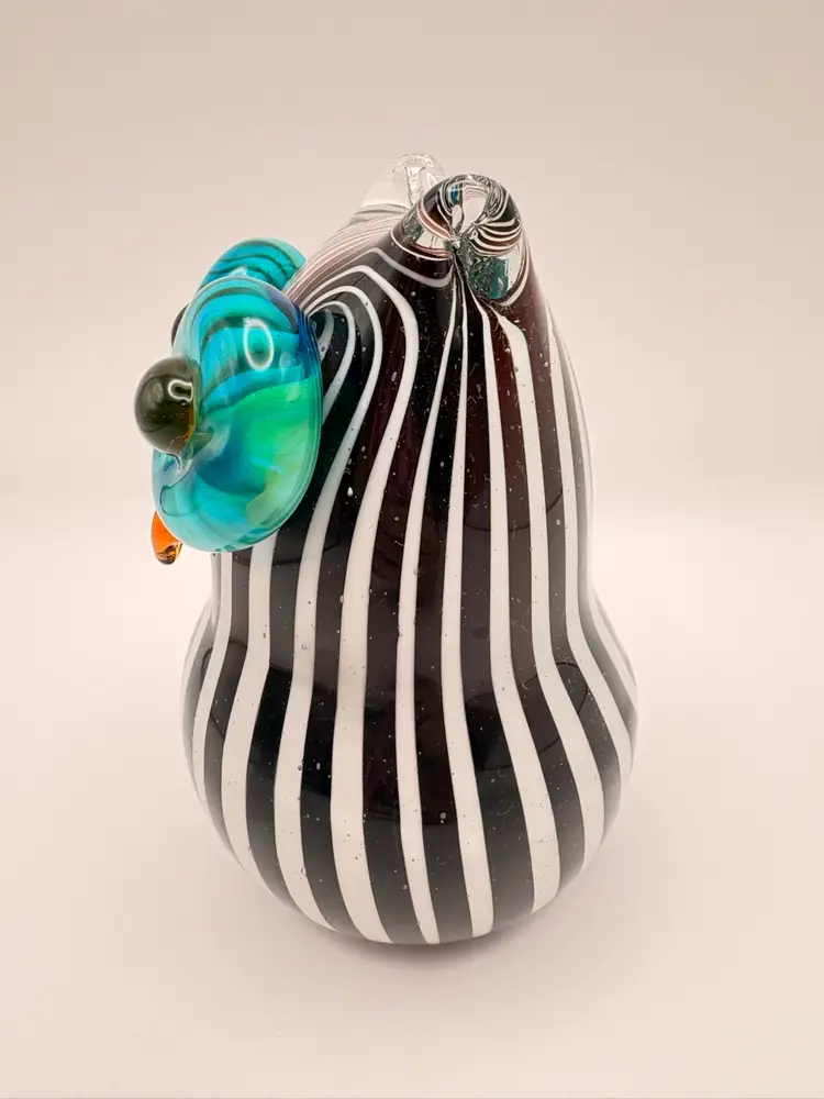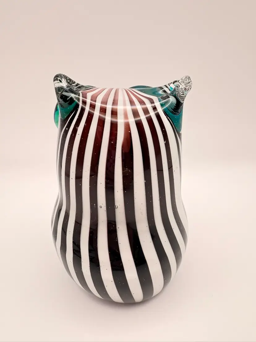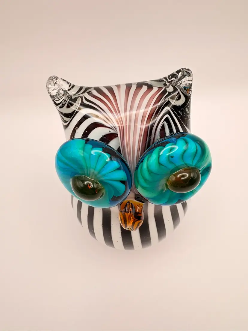 Vintage Murano Art Glass Striped Owl With Large Turquoise Eyes 5.5”