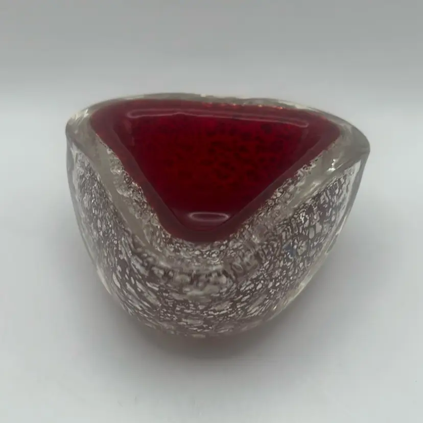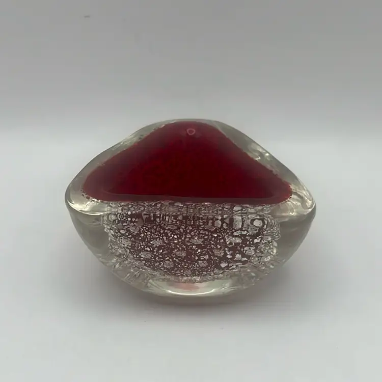 Featuring a deep red color with one small imperfection inside the top rim, otherwise stunning piece of glass!