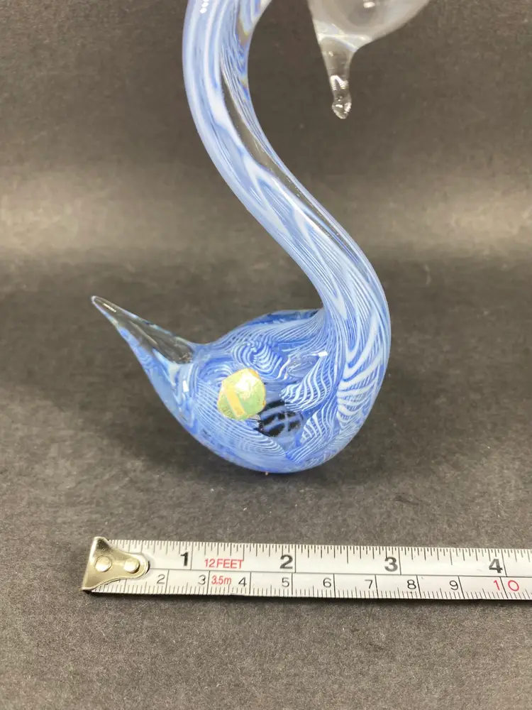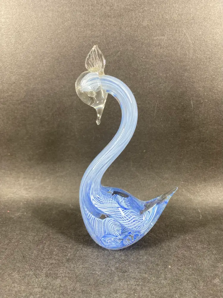 Vintage Murano Glass Blue Latticino Swan Figurine Italy