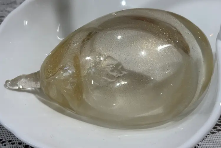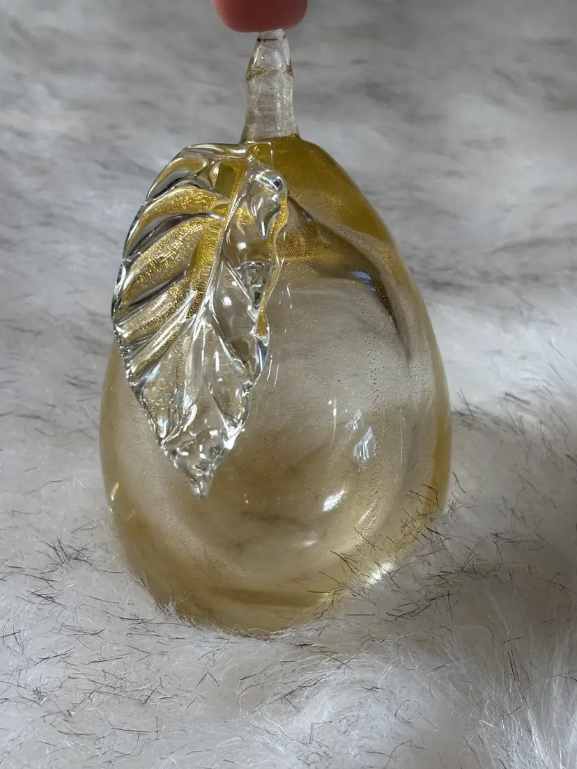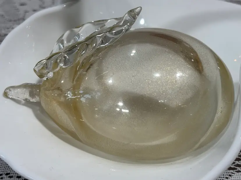 Vintage Murano blown Art Glass with gold flecks and elegant leaf detail.