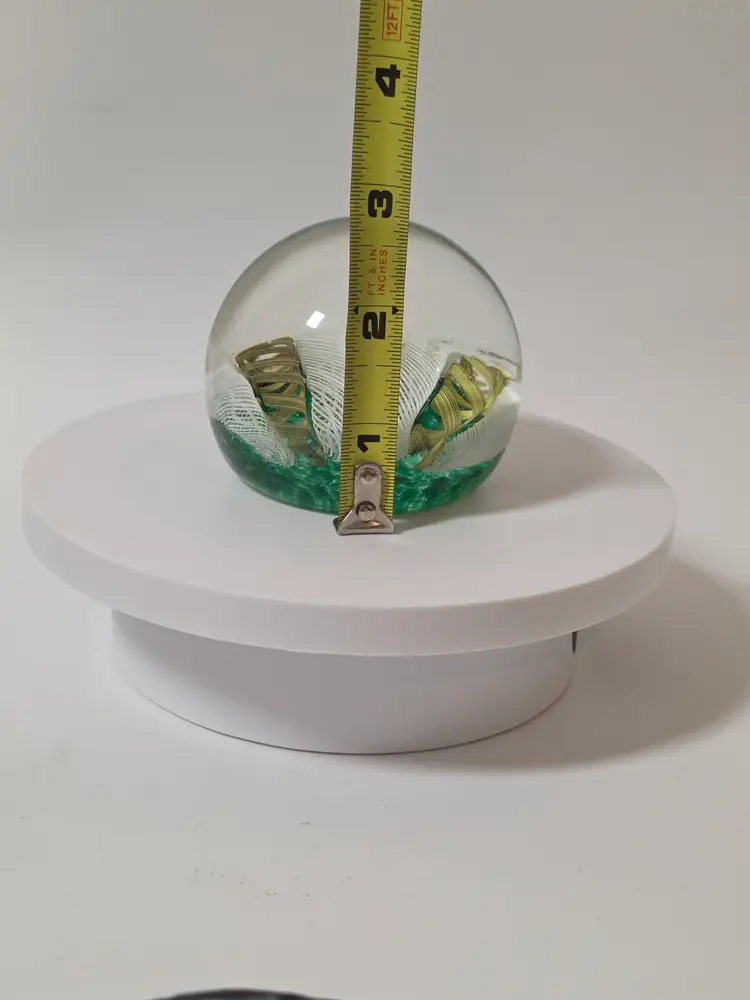 This Vintage Murano Laticino and Ribbon Large Paperweight in gold, white, and green is a stunning piece of Italian art glass. Hand-blown from Venice, this decorative paperweight features a swirl pattern and glossy finish, adding a touch of elegance to any space. The vibrant colors and unique design make it a beautiful addition to any collection of decorative pottery and glassware.