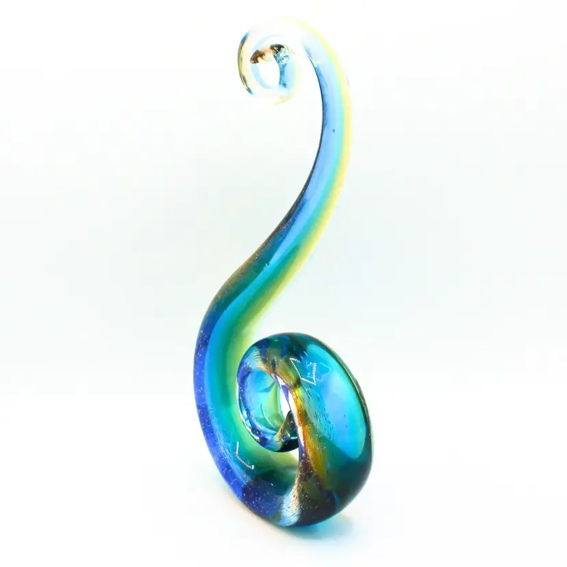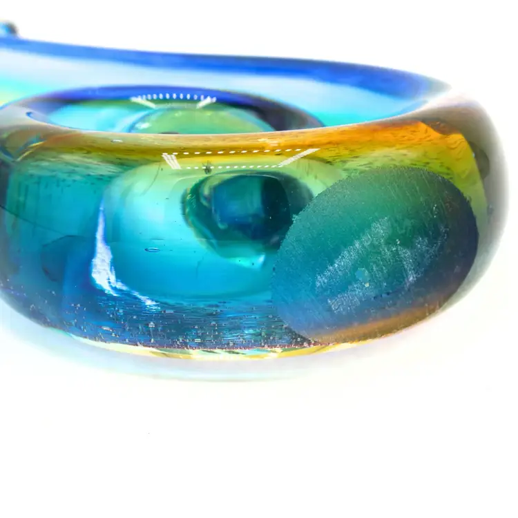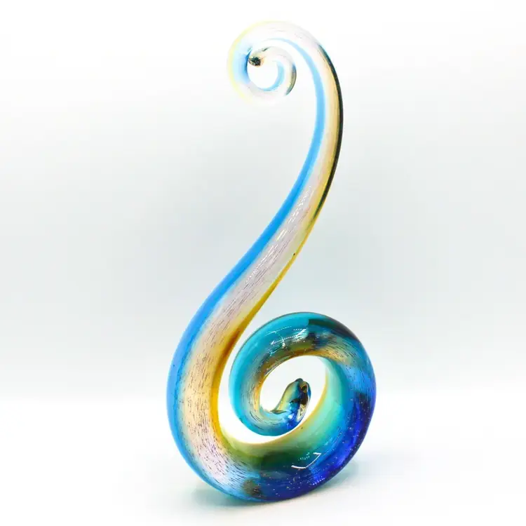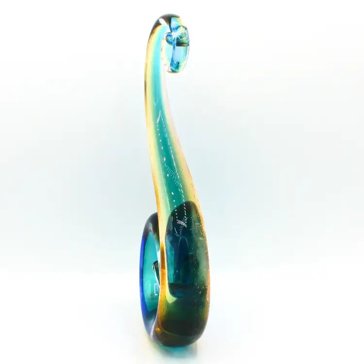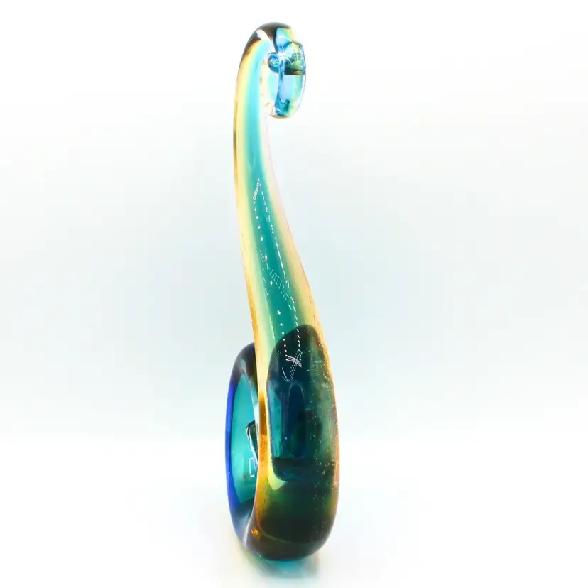 Vintage Murano Style Design Art Glass Sculpture – Blue & Amber Abstract Swirl Wave, Hand Blown Glass Figurine Hand-blown art glass sculpture in swirl/wave design