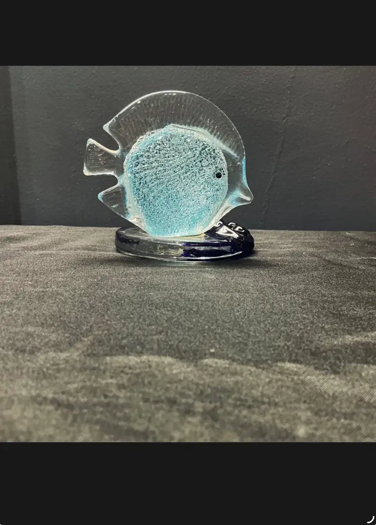 Details: Material: Hand-blown art glass Colors: Aqua blue, clear, cobalt Dimensions: Approx. 6” tall × 5.5” wide × 3” deep (see photos with ruler for scale) Condition: Excellent vintage condition with no cracks or chips. Minor shelf wear on base consistent with age. Origin: Murano style (attributed, not marked) Era: Mid-20th Century Uses: A beautiful piece for collectors of art glass, lovers of aquatic décor, or anyone seeking a statement figurine for display on a shelf, curio cabinet, or desk.