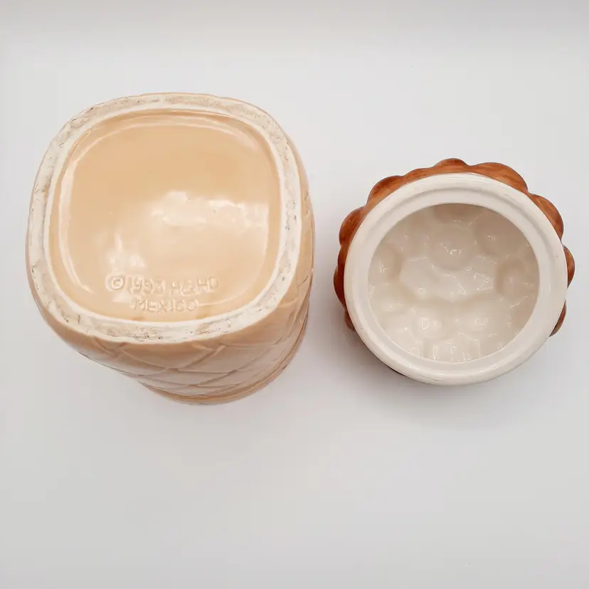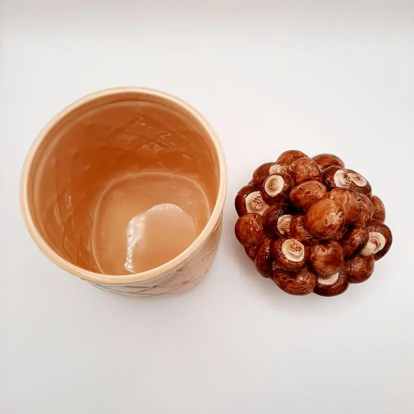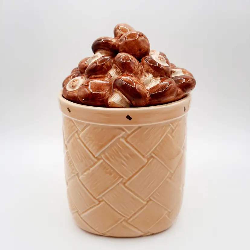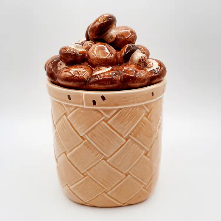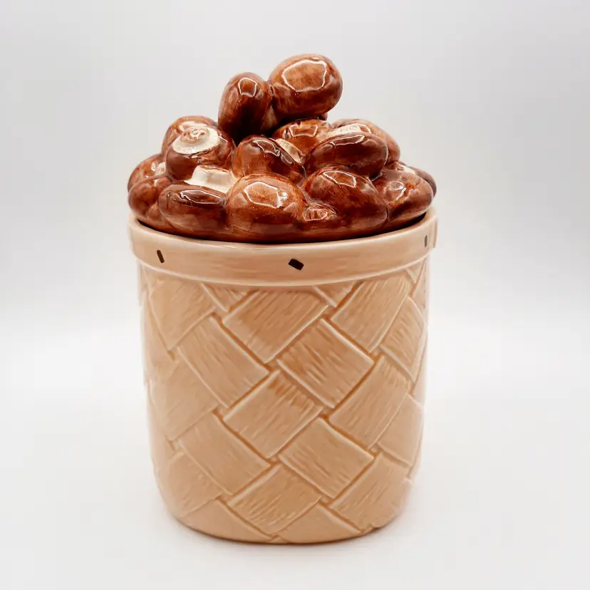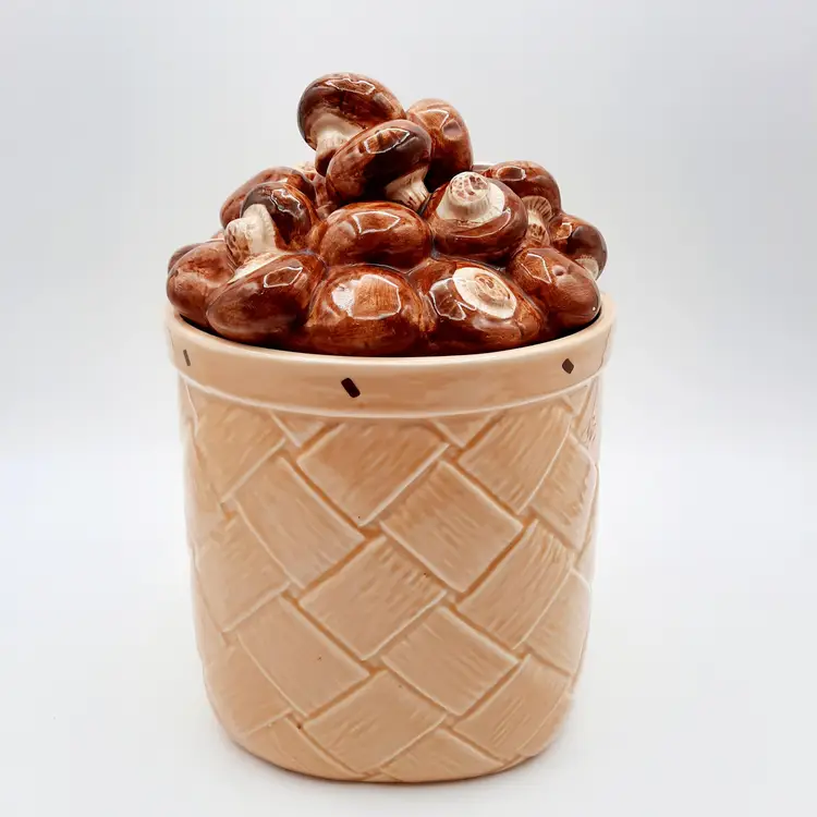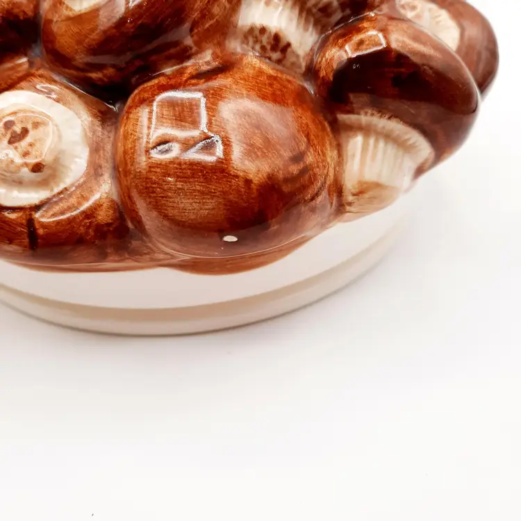 9 1/4"H x 6 1/4"W in excellent condition with a small paint chip on one of the mushrooms.