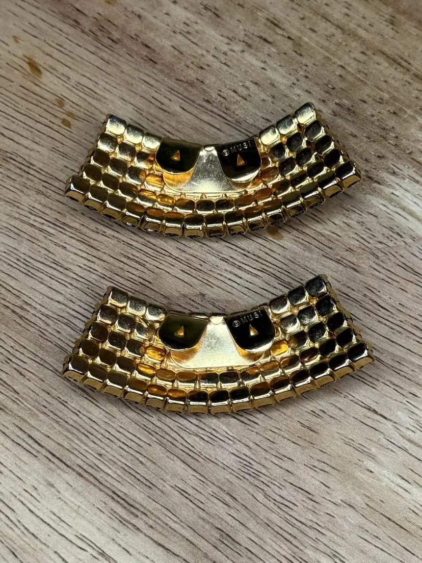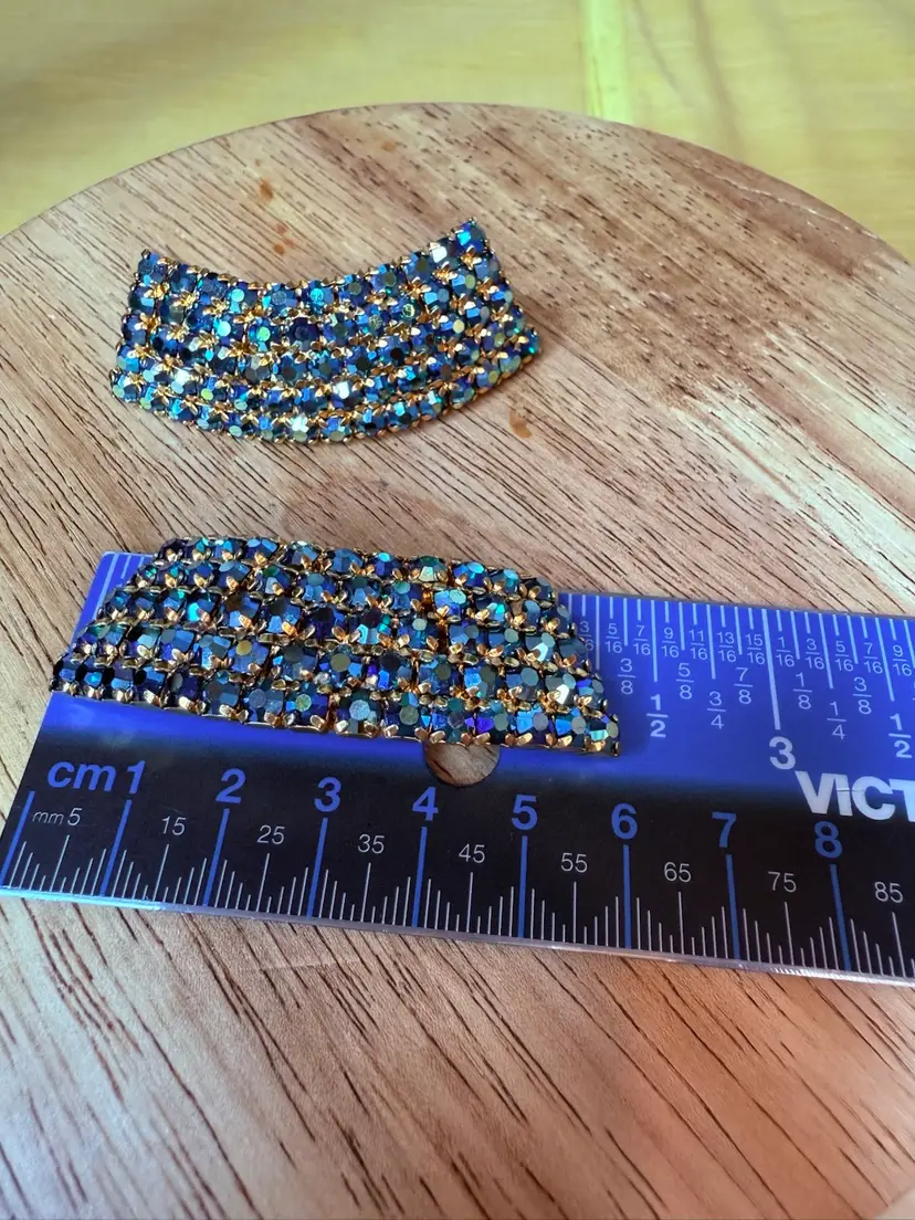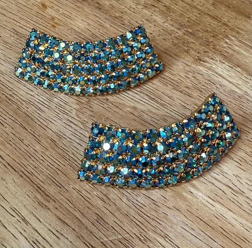 Enhance your vintage shoe collection with these rare MUSI Aurora Borealis Crystal Rhinestone Shoe Clips. The stunning blue aurora borealis colors adds a touch of elegance to your attire. Made of high-quality crystal rhinestone, these shoe clips are perfect for those who love vintage accessories. The brand MUSI is well-known for its durability and style. These shoe clips are a perfect fit for any occasion and will definitely make heads turn. Add a touch of glamour to your shoes with these vintage MUSI shoe clips.
