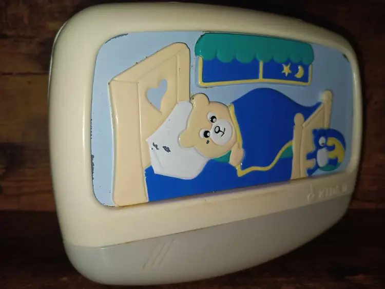 Vintage music lullaby crib attachment. Features a bear. Good condition with some wear from use, see photos. It measures approx. 6x3x4.5 inches.