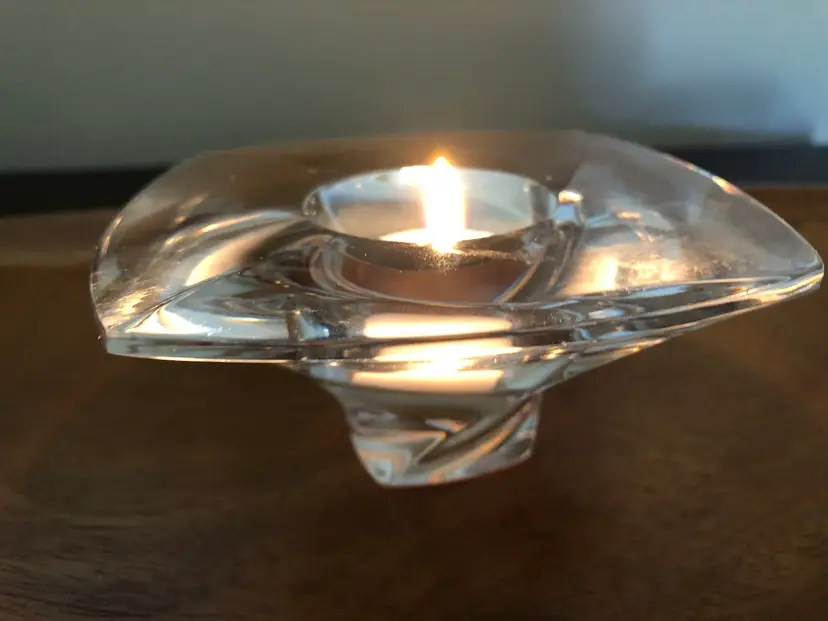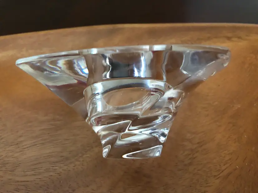 Vintage Nambe Twist Lead Crystal Glass Piroett Votive / Tea Light Candleholder - Modernist Clear Glass Candle Holder