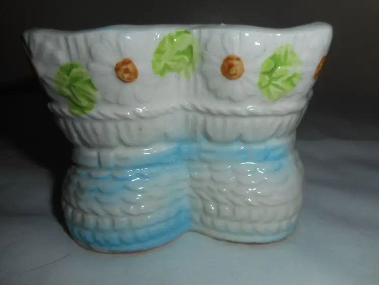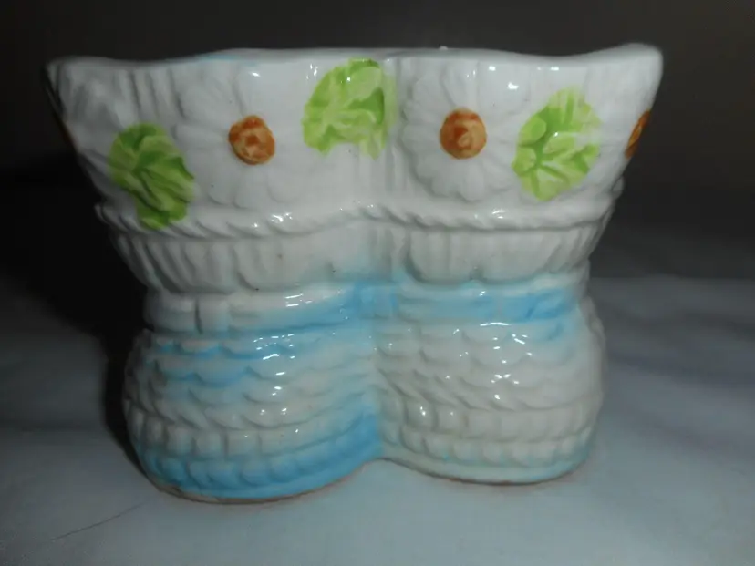 Vintage Blue Baby Bootie Shoes Ceramic Planter Japan Nursery Decor - from an Estate