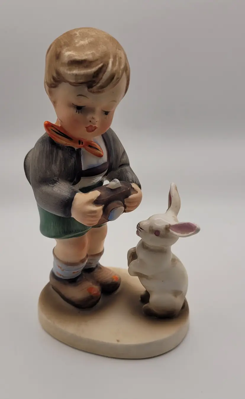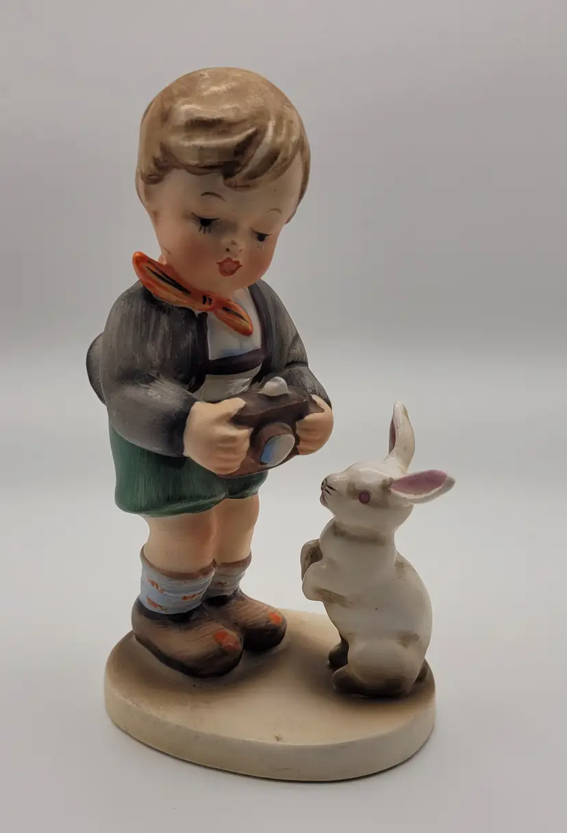 The Vintage Napco Ah1K "Hold Still" Boy Figurine is a charming collectible sculpture featuring a young boy holding still with a camera and rabbit. Crafted by the brand Napco, this figurine captures a nostalgic scene that would make a delightful addition to any decor or doll collection. Its unique design and vintage appeal make it a sought-after piece for collectors of decorative figurines.