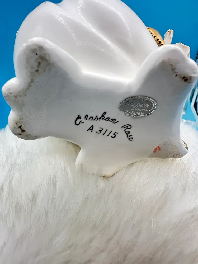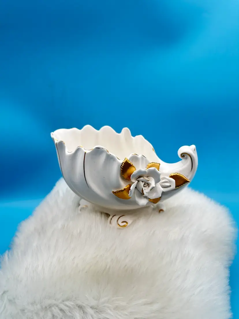Vintage Napco Alaskan Rose Planter White and Gold Vase 5.5"x3"x3", good preloved condition